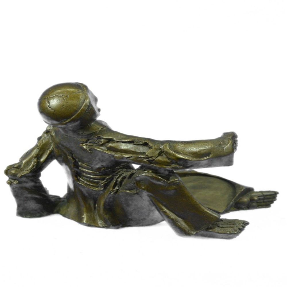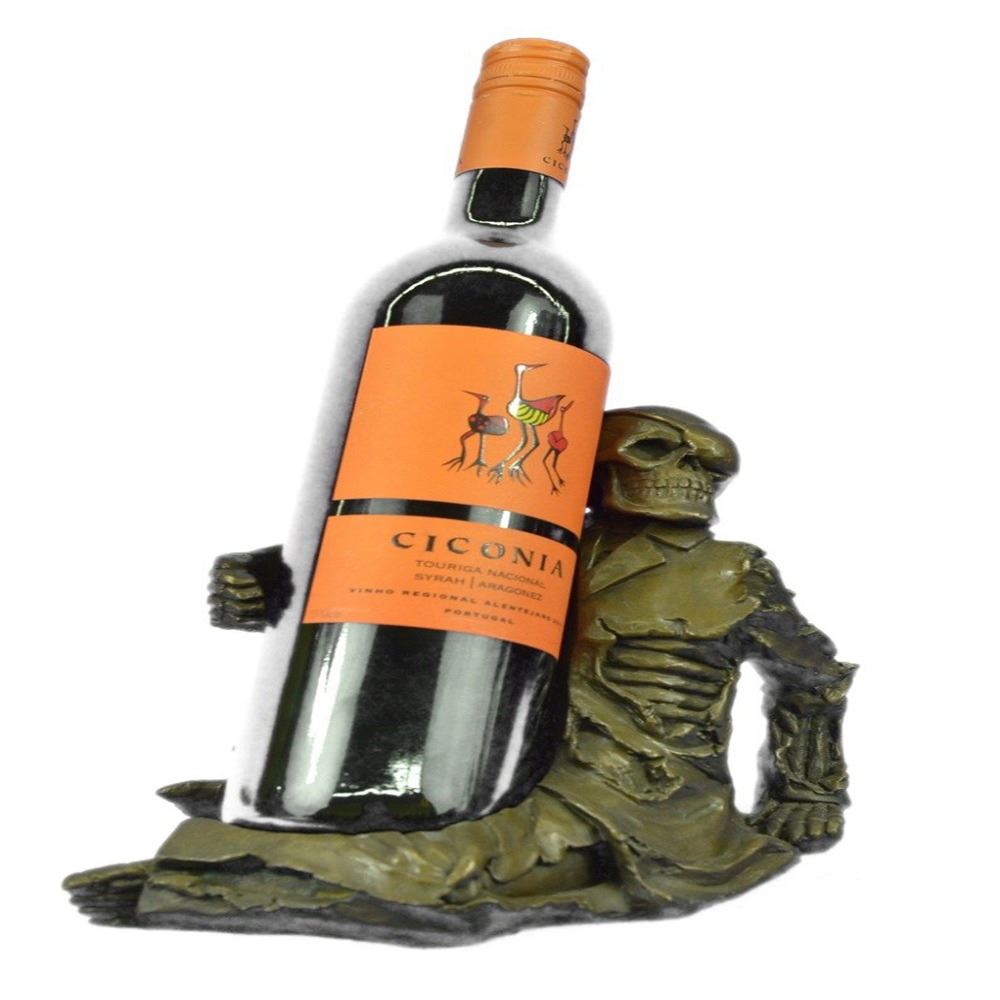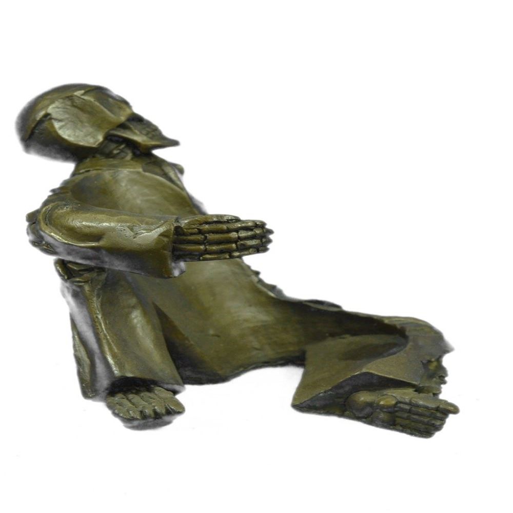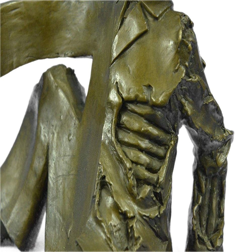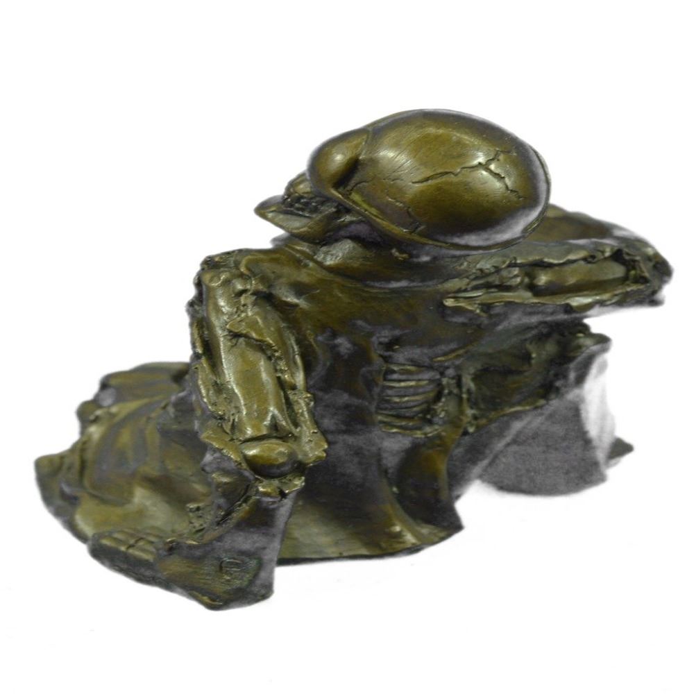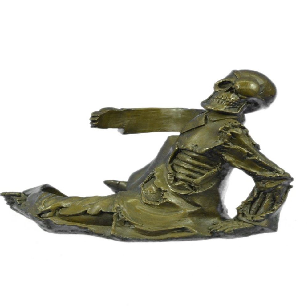 This ghastly, grinning human skeleton bottle holder is great for holding wine bottles, liquor bottles, or for holding olive oil as part of your kitchen decor. Made of real bronze, the holder stands 6 inches tall, 7 inches wide, and 6 inches deep. It makes a great gift for any skull lover, but you`ll have to provide a bottle of spirits. This Bronze Sculpture was cast using the Lost Wax Method and has a two-tone brown patina. Bronze Dimensions: Height 6 X Width 7 inches. Weight: 5 LBS.