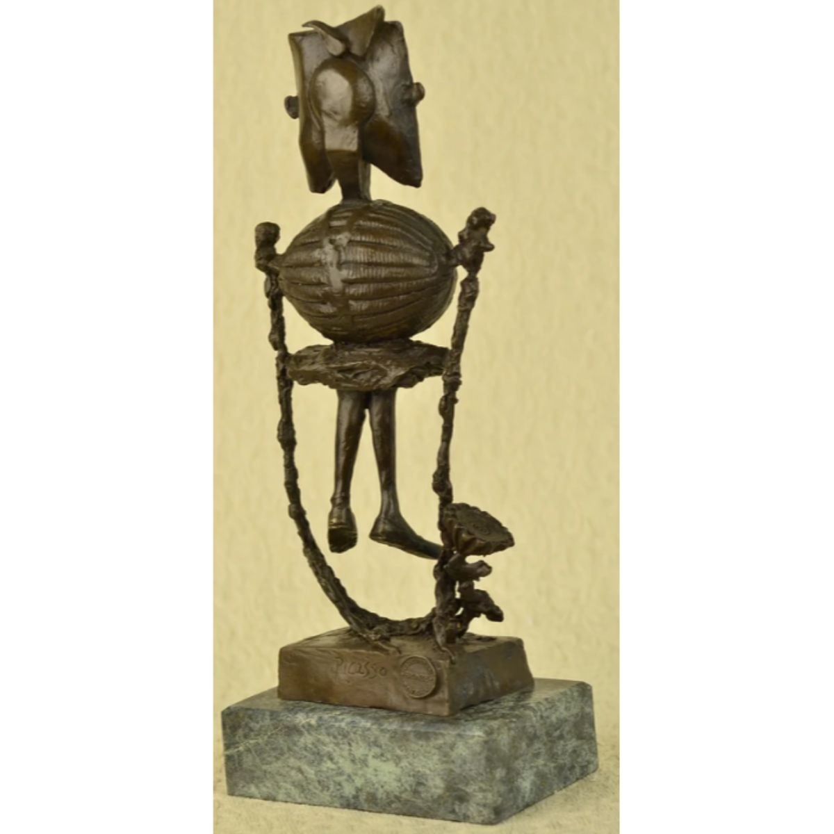 This sculpture is 100% hot cast bronze metal and was handmade by artists using the ancient lost wax casting process.  This sculpture contains no resins or cheap fillers. This sculpture is mounted on a real marble base. Condition: New Bronze Dimensions with Marble Base: Height 16" x Width 6" Marble Dimensions: 6" x 4" Height without base:14" Weight : 12 LBS Signature: Picasso Original or Reproduction: Reproduction