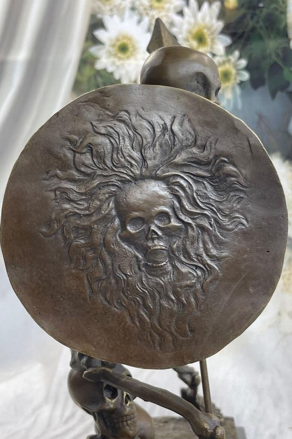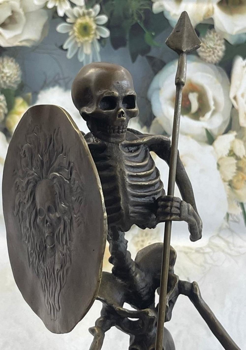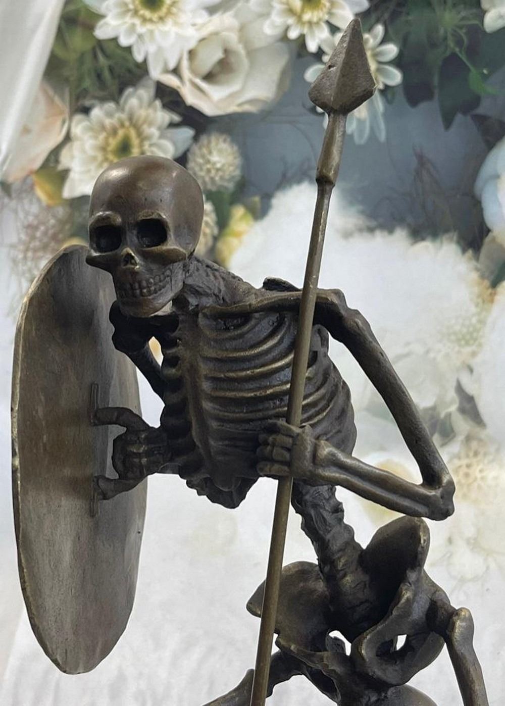 Skeleton Warrior w/ Shield and Spear Bronze Statue Marble Base