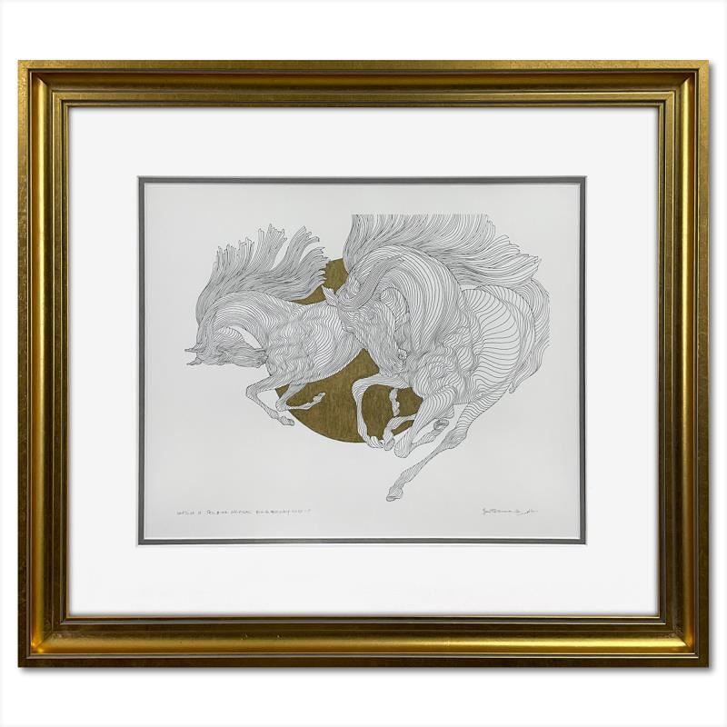 "Sketch H" is an original pen and ink drawing on paper with hand laid goldleaf by Guillaume Azoulay, hand signed by the artist. This piece comes custom framed. Includes Letter of Authenticity. Measures approx. 25" x 22" (frame), 16" x 13" (image).