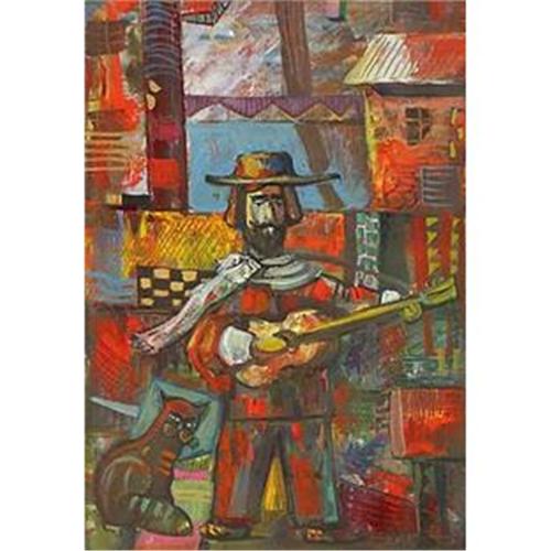 Sketch "Musician and cat" oil on paper on mat. It look very unusual.</em></td>