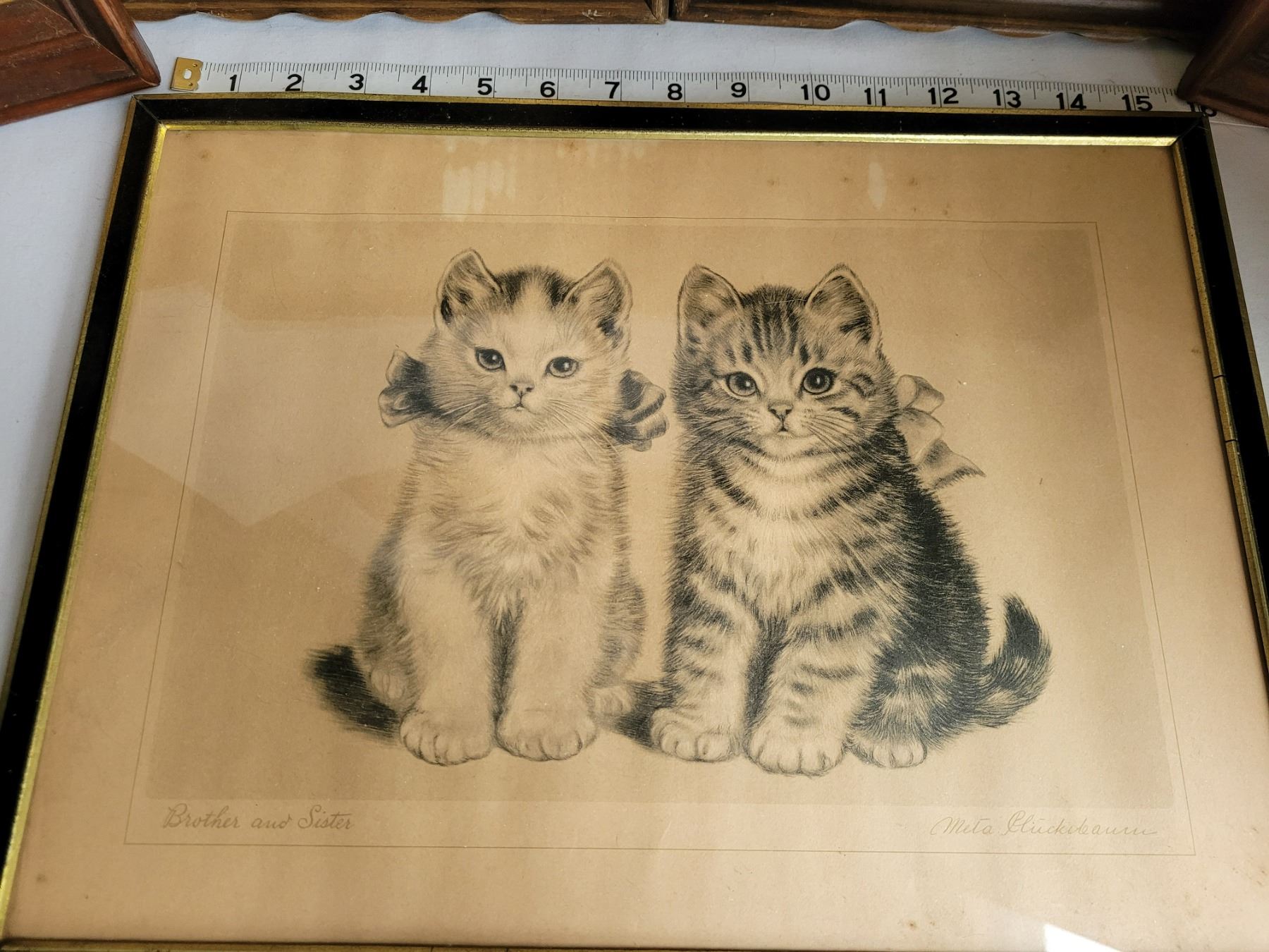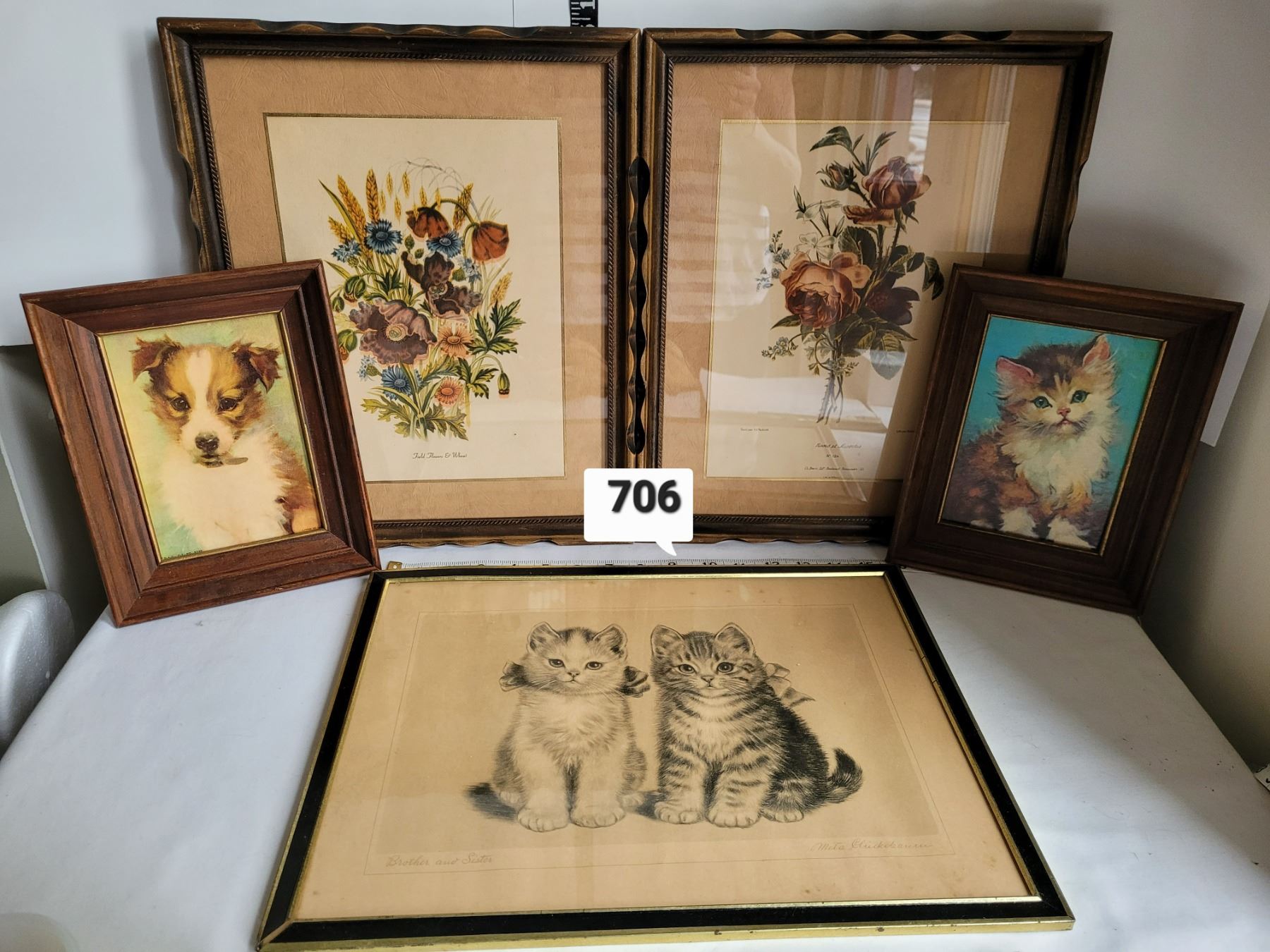 Sketch by Meta Clucki plus 4 framed vintage pictures.