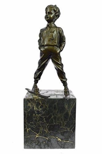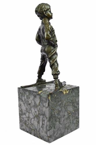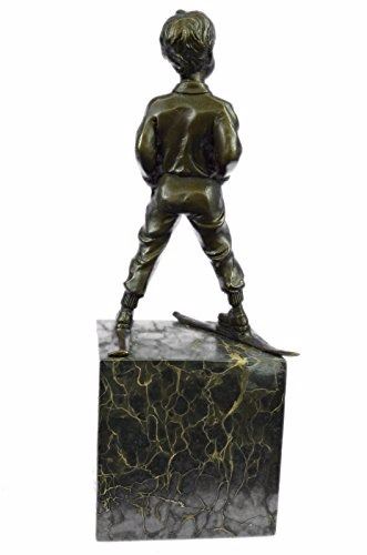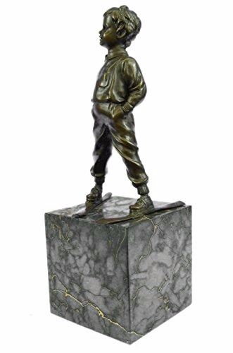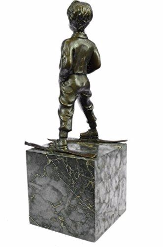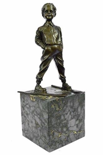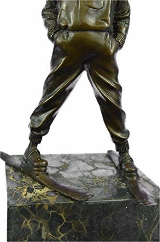 He Learned To Ski Before He Learned To Ride A Bike. This Young Cocky Skier, Takes To The Slopes Freestyle. He Tucks His Hands Into His Pockets For Warmth And Casually Drifts. He Curves His Skis Outward To Slow Down. This Brown Patina Sculpture Was Cast Using The Lost Wax Method And Mounted On A Marble Base. Bronze dimensions with marble base: Height 11 X Width 4 inches. Weight: 10 lbs.