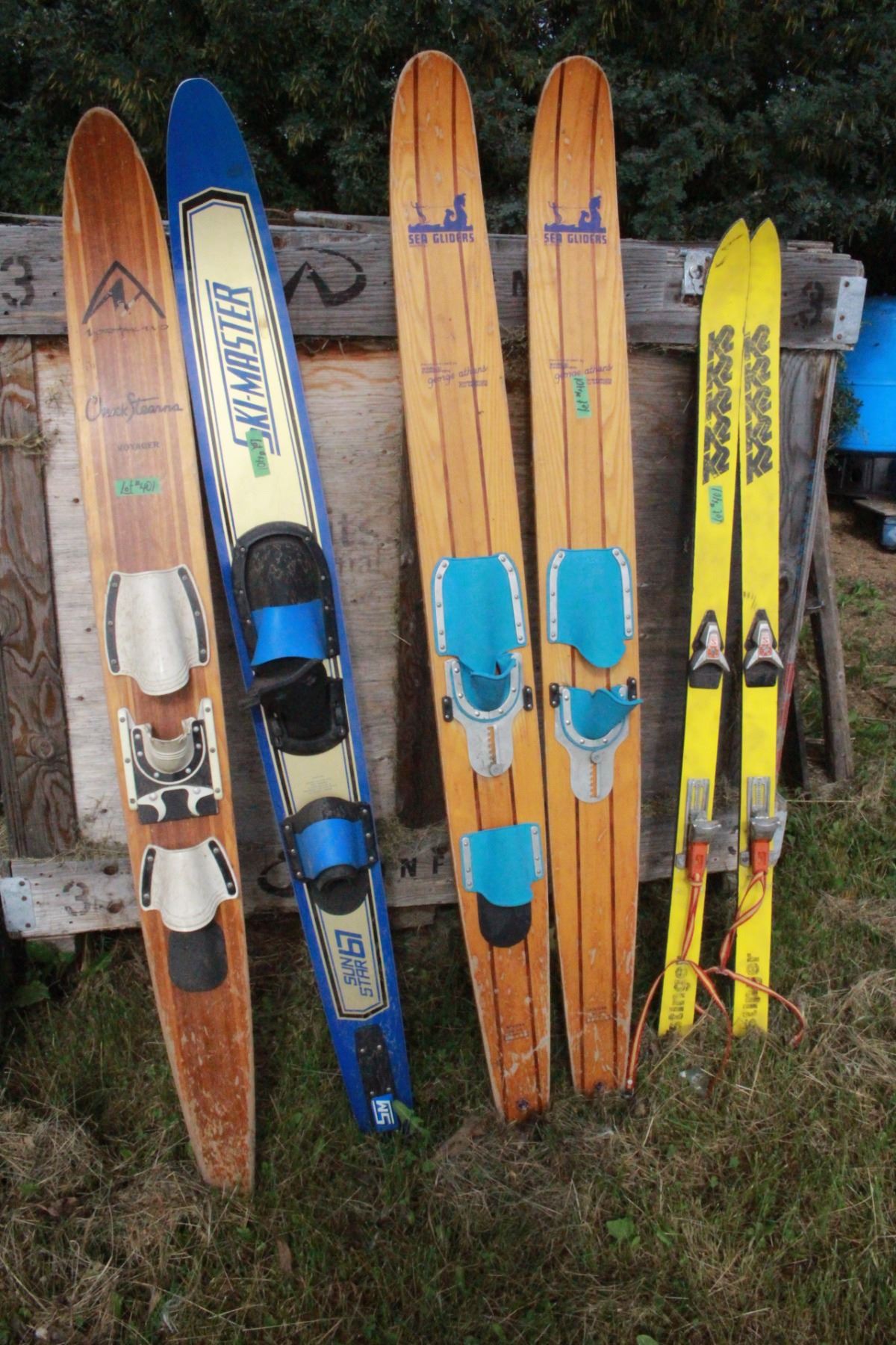 Pr of Snow Skiis; Pr of Water Skiis and 2 Single Water Skiis