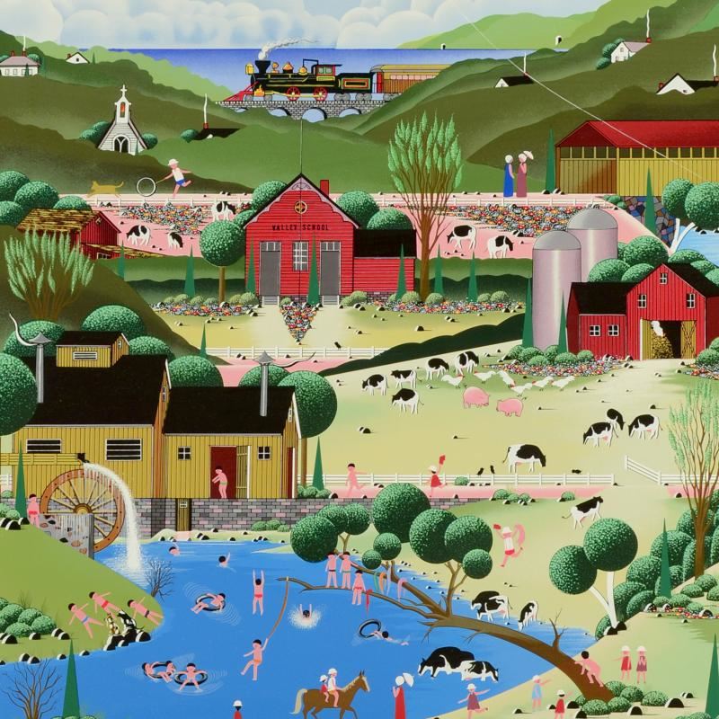 "Skinny Dipping" is a limited edition on wood panel by Nobuo "Nicky" Watanabe, numbered and hand signed by the artist. Measures approx. 32" x 40" (wood panel); 25" x 33" (inset image).