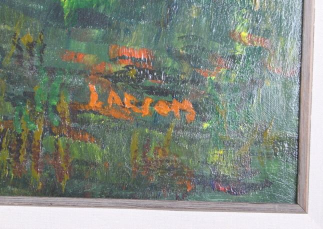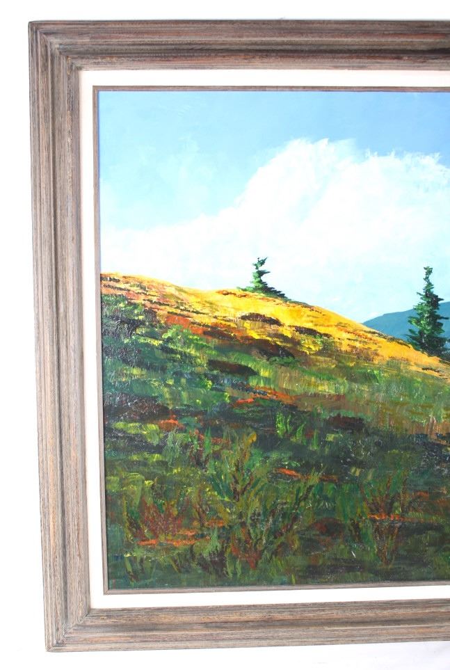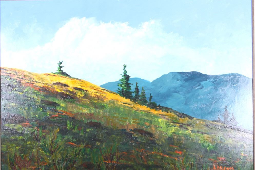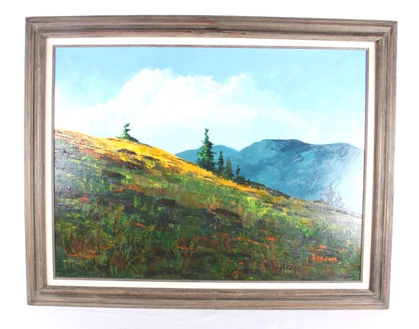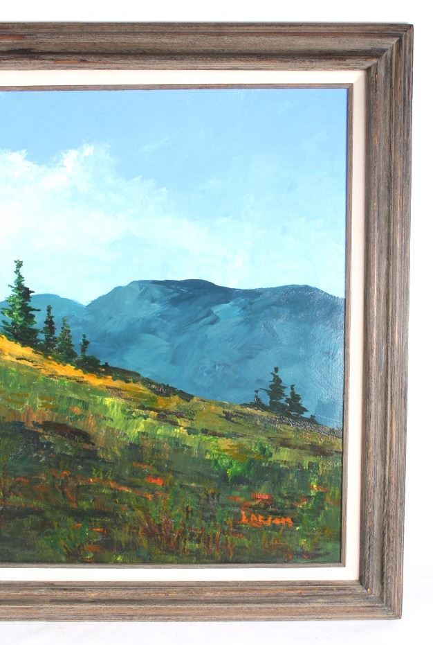 This lot features a Gordon "Skip" Larcom original landscape painting. Gordon Larcom is a native of Massachusetts but has been a resident of Wyoming since 1967 where he practiced medicine in Casper. He originally painted in oils and acrylics but has limited his work to watercolor media for the past twenty years. Retiring from medicine in 1990, he has more actively pursued his painting. Aside from painting, his interests include traveling, skiing, kayaking and extensive stays at his cabin in Wilson, Wyoming. His piece have been displayed in notable shows and are sort after by collectors throughout the U.S. The piece has a stunning wood frame in good condition. the overall condition of the piece is good for its age. Measures: 37" H x 47" W
