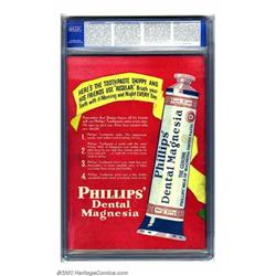 Skippy's Own Book of Comics #1 (No Publisher, 1934) CGC FN/VF 7.0 Off-white pages. Let's talk comic forefathers. This book was distributed four years before any caped, flying superhero could be found. It is considered the fourth comic book overall, and the first four-color comic about one character. Legendary publisher Max Gaines convinced the sponsors of radio's Skippy to put out and give away this promotional comic book to anyone purchasing their product. An incredible 500,000 copies were printed, but today the estimated remainders number less than 20, according to The Photo-Journal Guide to Comic Books, which makes this one really, really rare in this grade. This is the only copy in any grade that CGC has certified to date. Overstreet 2002 FN 6.0 value = $1,350; VF 8.0 value = $2,900. Important notice: We expect to be auctioning lots at the rate of 200-250 per hour. Sometimes eBay Premier live bid software cannot keep up with that pace, so we strongly recommend that you place a realistic proxy bid now as insurance to avoid disappointment. Also please note that all Heritage/CAA lots purchased through eBay Premier carry a 20% Buyer's Premium. Please make sure you read the Terms and Conditions.