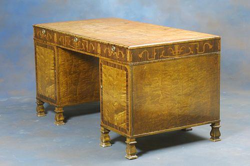 Skrivbord, björk/palisander, intarsia i olika träslag, 1920-30-tal, H 75, 144x77