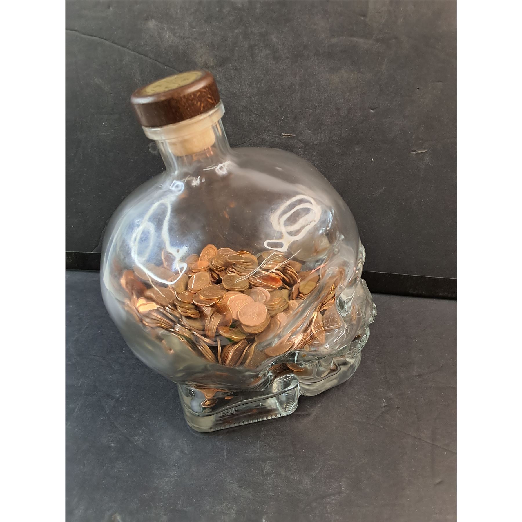 Skull Bottle with Pennies