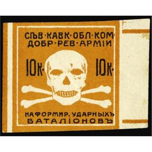 <style type="text/css"> body, td, th { font-family: Arial, Helvetica, sans-serif; font-size: 12px; color: #482424; margin: 0px; padding: 0px; } #header { background-image: url(http://www.bowersandmerena.com/ebay/images/template_v3_01.gif); clear: both; background-color: #590303; border-top-width: 2px; border-top-style: solid; border-top-color: #B38C4F; } #header #header_wrapper { height: 75px; clear: both; width: 800px; margin-right: auto; margin-left: auto; background-image: url(http://www.bowersandmerena.com/ebay/images/template_v3_03.gif); background-repeat: no-repeat; background-position: right; color: #F3EDCC; } #header #header_wrapper #header_logo { float: left; height: 75px; width: 444px; background-image: url(http://www.bowersandmerena.com/ebay/images/template_v3_02.gif); background-repeat: no-repeat; font-size: 10px; text-transform: capitalize; color: #B38C4F; } #header #header_wrapper #header_right { float: left; height: 75px; width: 356px; text-align: right; } #header #header_wrapper #header_right #headerLoginBtn { margin-bottom: 30px; } #header #header_wrapper #header_right input#txtSearch { color: #B49056; border: 1px solid #B49056; width: 175px; padding-top: 3px; padding-right: 3px; padding-bottom: 4px; padding-left: 3px; } #nav { height: 37px; background-image: url(http://www.bowersandmerena.com/ebay/images/template_v3_05.gif); clear: both; } #nav #nav_wrapper { height: 35px; width: 800px; margin-right: auto; margin-left: auto; border-left-width: 1px; border-left-style: solid; border-left-color: #B38C4F; } #nav #nav_wrapper a { padding-right: 15px; padding-left: 15px; border-right-width: 1px; border-right-style: solid; border-right-color: #B38C4F; height: 25px; padding-top: 10px; display: block; float: left; text-decoration: none; font-weight: bold; color: #5D0303; } #nav #nav_wrapper a:hover { color: #B38C4F; } #nav #nav_wrapper #search { float: right; padding-top: 7px; } #nav #nav_wrapper #search #txtSearch { font-family: Arial, Helvetica, sans-serif; font-size: 10px; text-transform: uppercase; color: #D2AE75; border: 1px solid #B38C4F; padding: 3px; } #content_bgd { background-image: url(http://www.bowersandmerena.com/ebay/images/template_v3_09.gif); background-repeat: repeat-y; background-position: center; padding-top: 15px; padding-bottom: 15px; background-color: #FBFBDB; } #content_wrapper { clear: both; height: auto; width: 800px; margin-right: auto; margin-left: auto; } .LotDetailWhite { line-height:normal; font-size:13px; font-family: arial,helvetica,sans-serif; color: White; font-weight: bold; } .LotDetailInformation { line-height:normal; font-size: 13px; font-family: arial,helvetica,sans-serif; } .LotDetailMessage { line-height:normal; font-size: 13px; font-family: arial,helvetica,sans-serif; color: red; } } tr.HeaderAuctionTitle td { color: #000000; font-weight: bold; padding: 2px; background-image: url(http://www.bowersandmerena.com/ebay/images/template_v3_05.gif); background-repeat: repeat-x; border-bottom-width: 1px; border-bottom-style: solid; border-bottom-color: #B38C4F; } table.AuctionSummary a, table.AuctionSummary a:link, table.AuctionSummary a:visited { color: #0000FF; text-decoration: none; } } td.tableHeaderLeft { border-left-width: 1px; border-left-style: solid; border-left-color: #B38C4F; } td.tableHeaderRight { border-right-width: 1px; border-right-style: solid; border-right-color: #B38C4F; } td.tableCellMiddle { border-left-width: 1px; border-left-style: solid; border-left-color: #B38C4F; border-right-width: 1px; border-right-style: solid; border-right-color: #B38C4F; padding: 5px; } tr.footer td { border-top-width: 1px; border-top-style: solid; border-top-color: #B38C4F; } </style> </head> <body> <div id="header"> <div id="header_wrapper"> <div id="header_logo"> </div> <div id="header_right"> </div> </div> </div> <div id="nav"> <div id="nav_wrapper"> <a href="http://www.bowersandmerena.com">Our eBayLive Auctions</a> <a href="#PaymentInfo">Payment Information</a> <a href="#ShippingInfo">Shipping Information</a> <a href="#About">About Bowers and Merena</a> </div> </div> <div id="content_bgd"> <div id="content_wrapper"> <table width="100%" border="0" cellpadding="5" cellspacing="0" class="AuctionSummary"> <tbody> <tr class="HeaderAuctionTitle" style="height: 25px;"> <td align="left" class="tableHeaderLeft" > </td> <td align="center" class="tableHeaderRight"> <span style="font-size: large;">Lot #2137. North Caucasus. North Caucasus Revolutionary Army Shock Batz Volunteers, Skull and Cross Bones Vignetted Notes, ND (ca. 1918-1920s).</span> </td> </tr> <tr> <td colspan="3" class="tableCellMiddle"> Lot of 4 different colored notes, all with skull and crossbones vignette. ND (ca. 1918-1920s). 10 and 50 Kopeks and 1 and 3 Rubles denominations. 40mm x 45mm sized notes in brown, red, blue and green. All are in AU to Unc. condition. Rare banknotes. Unlisted in SCWPM and Denis. Great notes for Halloween. The guys that used these were probably very nice.