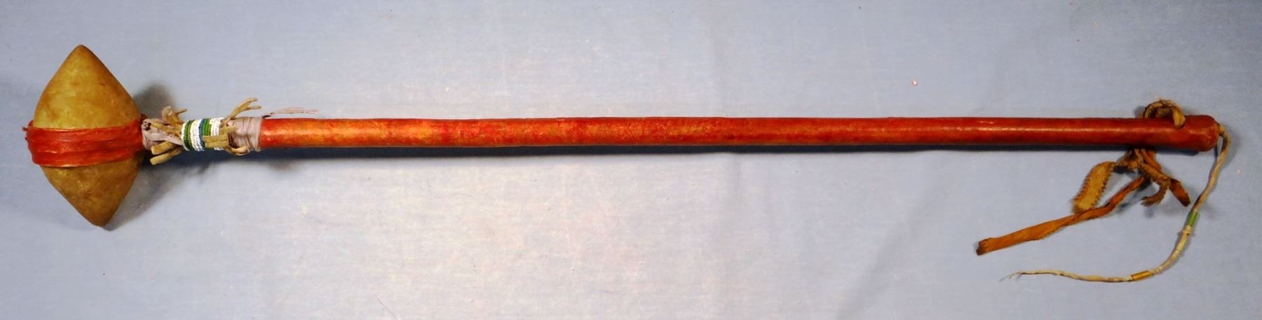Skull cracker tomahawk, 35", beads and trade cloth trim