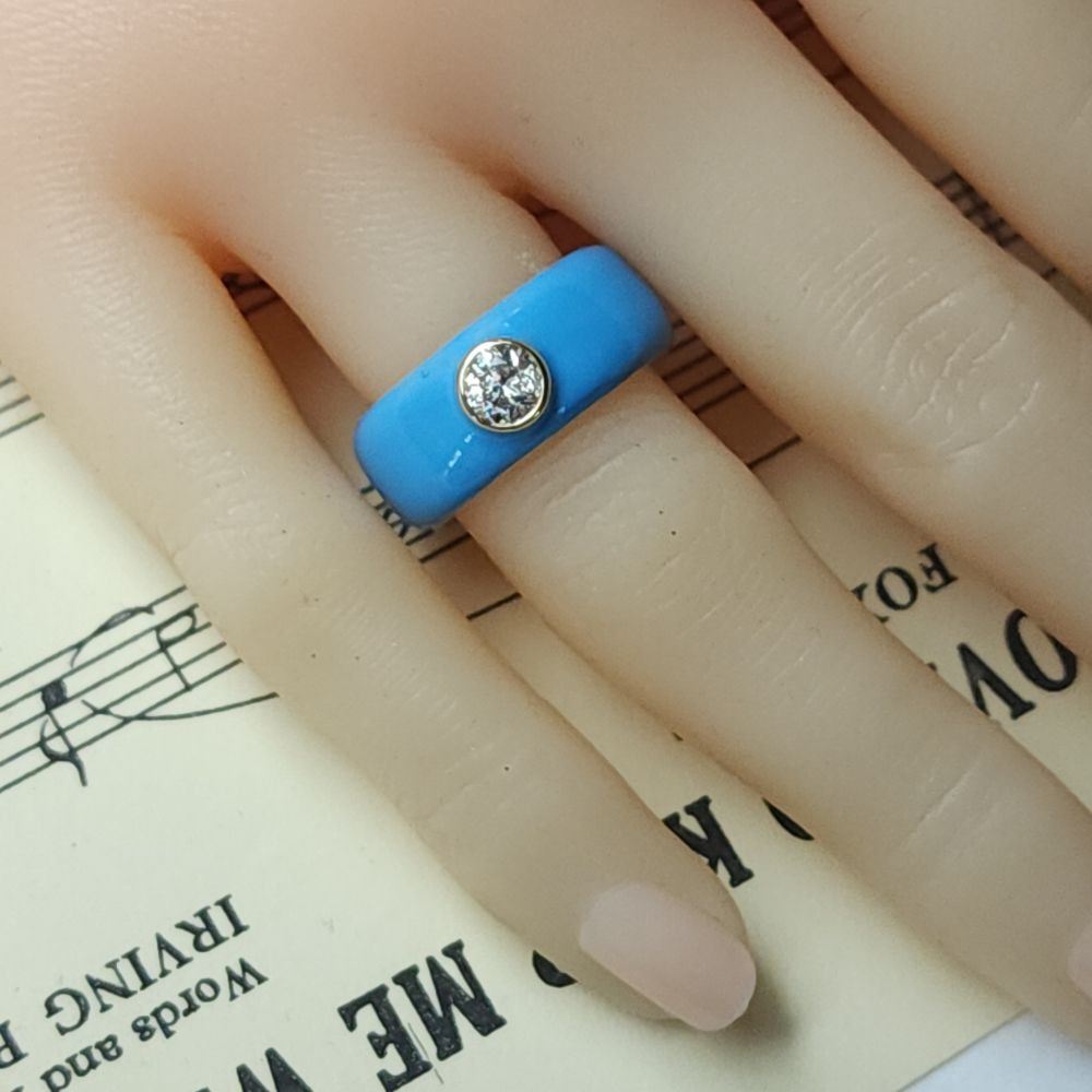 Sky Blue Enamel Wide Band with Bezel-Set Diamond