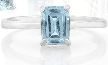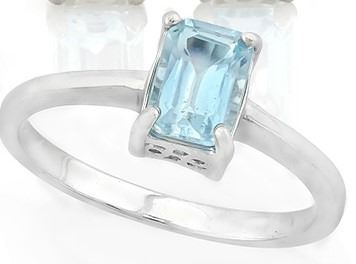 1.25CT Sky Blue Topaz emerald cut gemstone set in solitaire ring mounting. Mounting is Platinum over Sterling Silver. Size 7. 2.2g