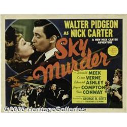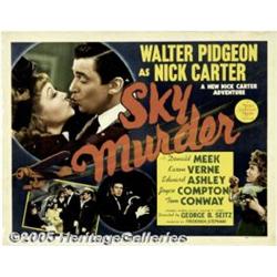 <B>Sky Murder (MGM, 1940)</B></I> Half Sheet (22" X 28"). This was one of the MGM-Nick Carter series which starred Walter Pidgeon as Detective Carter. This half sheet is rolled and in beautiful condition for being sixty-five years old. There is minor silverfish nibbling on the left border and other than that there is not a pinhole. Very Fine+.