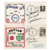 Desirable pair of recovery covers: one with a cachet honoring the US Navy Recovery Force for the Skylab III mission, postmarked on the USS New Orleans on September 5, 1973, signed in black felt tip by Alan Bean, Owen Garriott, and Jack Lousma; and one with a cachet honoring the US Navy Recovery Force for the Skylab IV mission, postmarked on the USS New Orleans on February 8, 1974, signed in black felt tip by Bill Pogue, Ed Gibson, and Jerry Carr. In overall very fine condition.