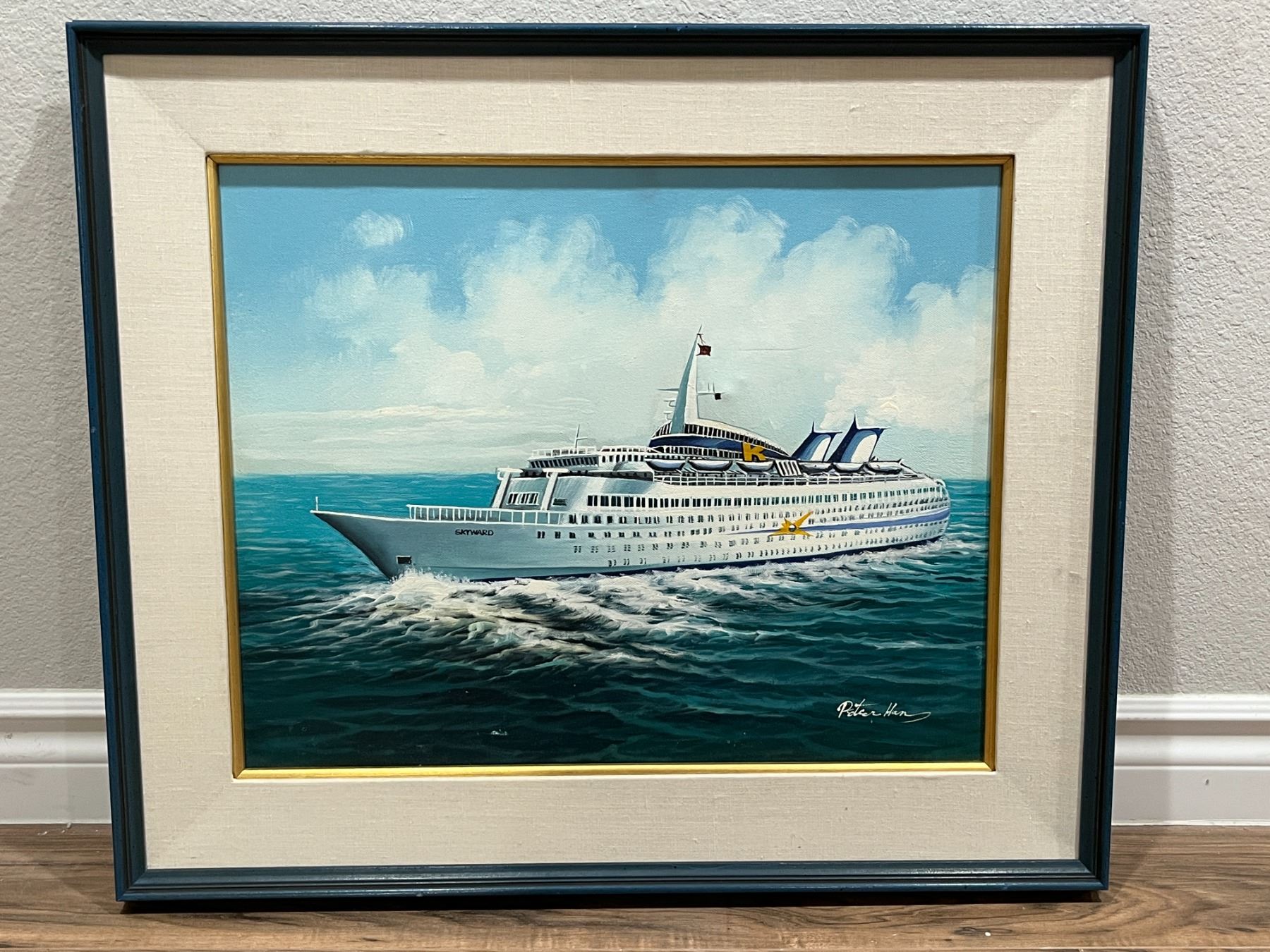 Skyward Ship in Sea Painting in Frame, Peter Han, 27x22" framed, 20x16" Unframed