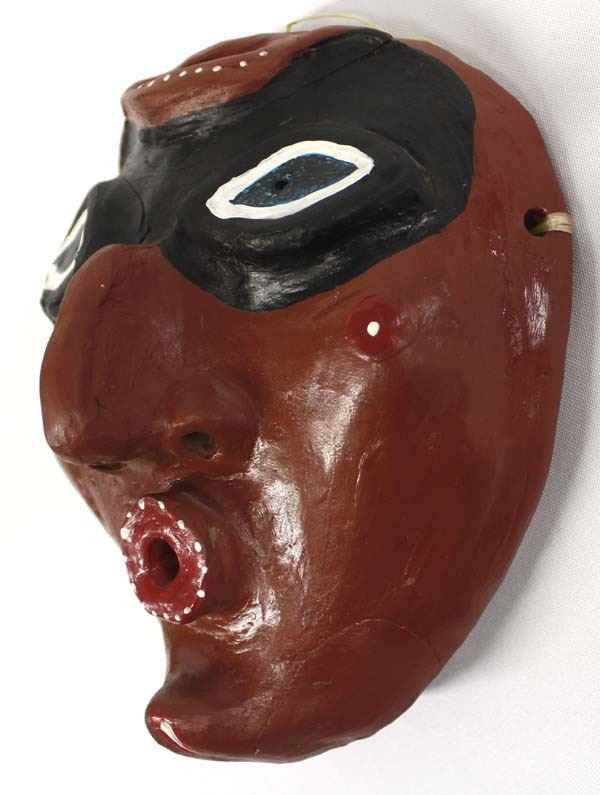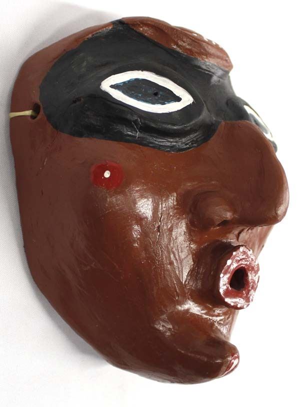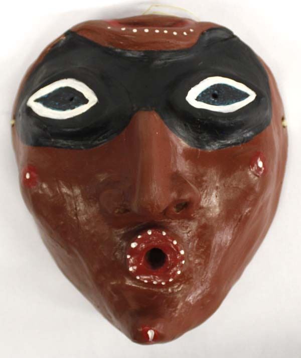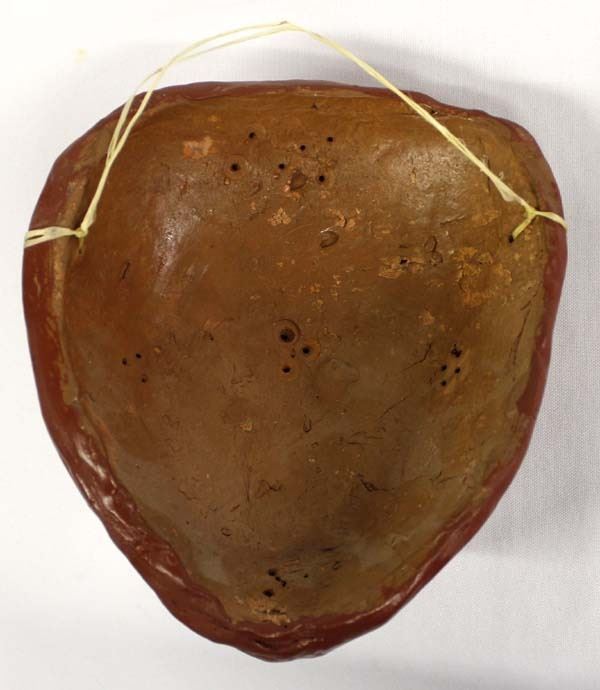 Slab Pottery Mask of Amazon Rain Forest Warrior, measures 6'' x 7'', some pressure cracks