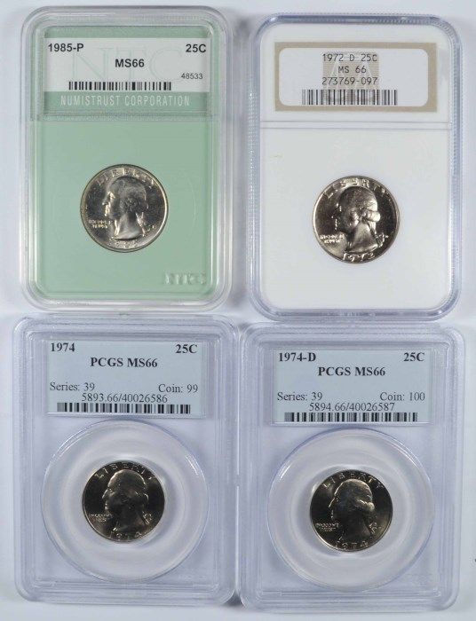 Slabbed Washington Quarters (72-D,74,74-D,85) MS-66's