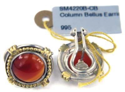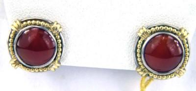 Slane & Slane 18K Gold & Silver Agate EarringEarring weight is 7.5 gramsThe measurement of stone: 10mm round. Measurement of earring is 17x17mm.The earring is 3mm thick.