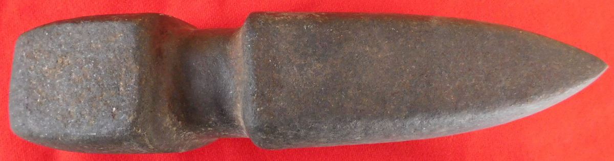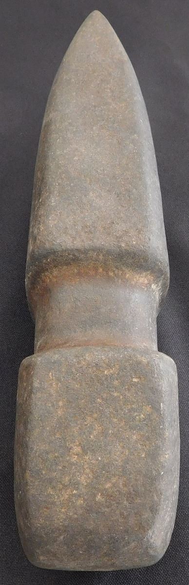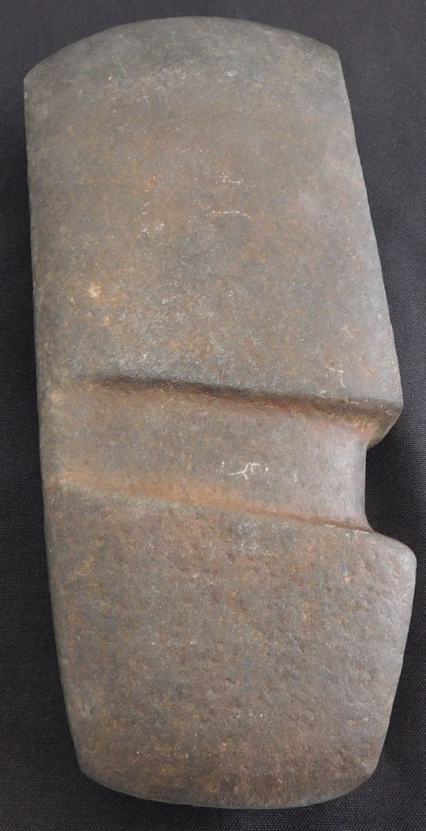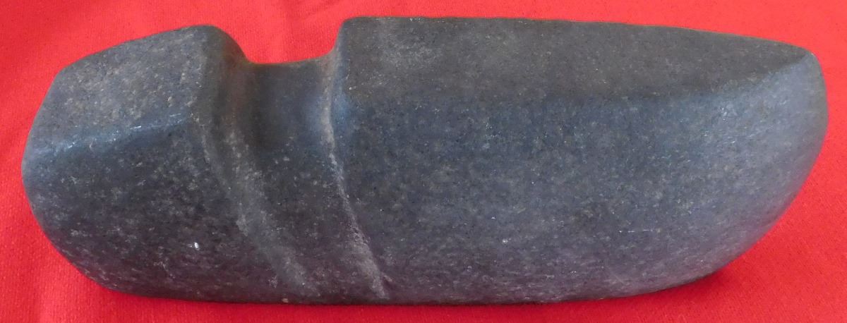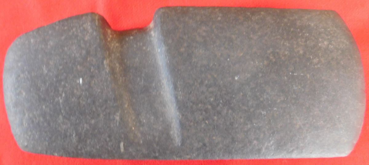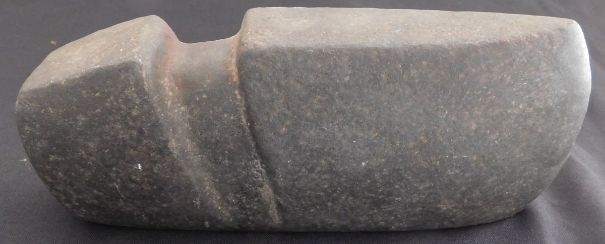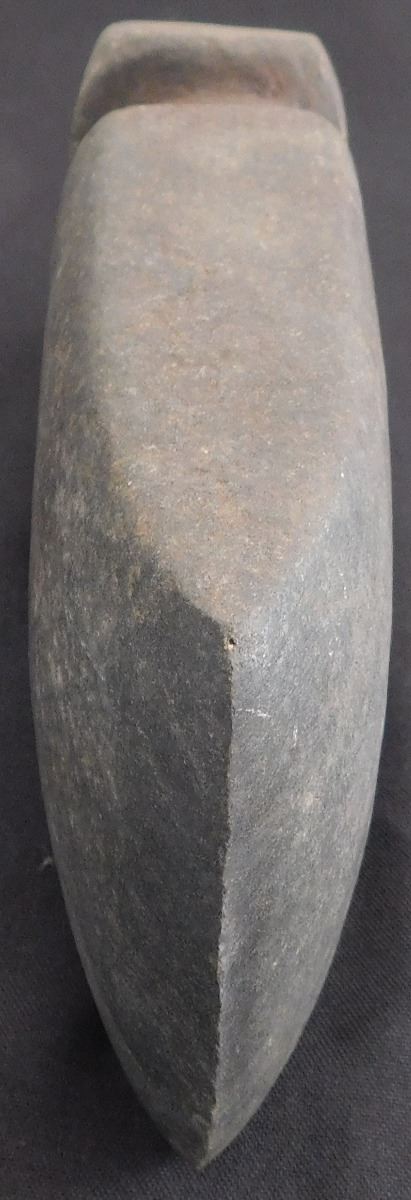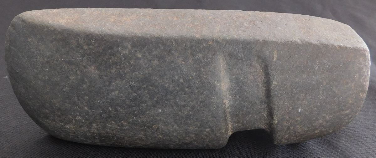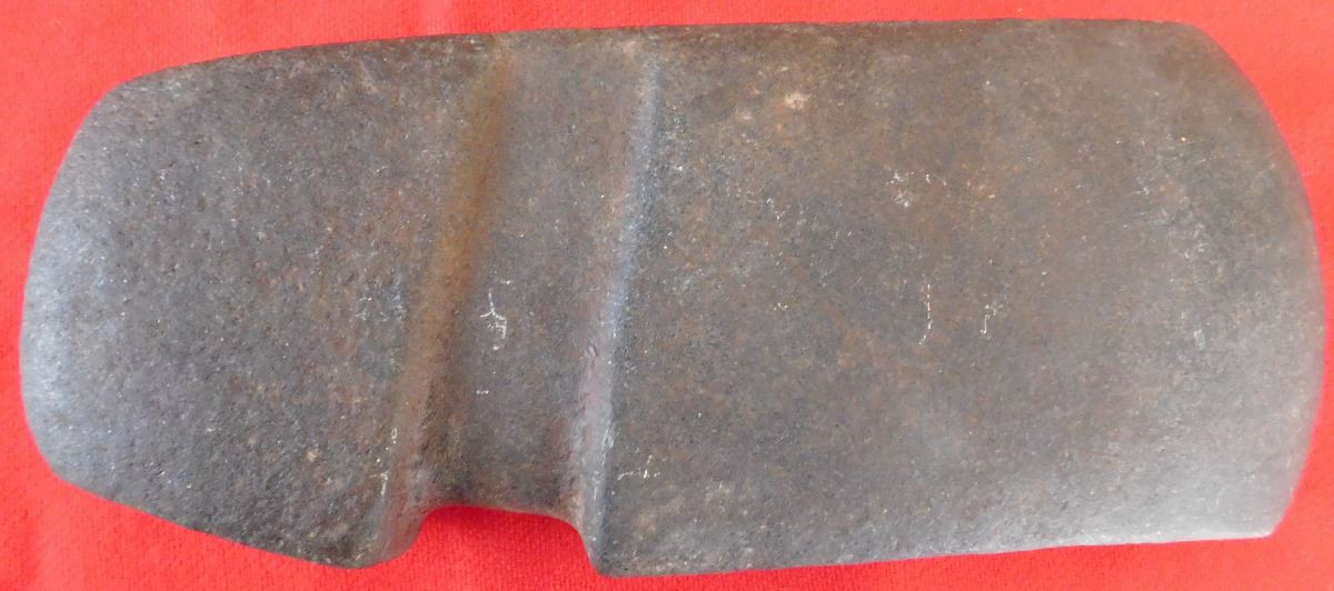Slant Groove Axe, pre-historic item. Made of granite, the item measures 9.5" x 2" x 4". From Quincy, Illinois. Axe has some polish. Condition: Minor nicks, some polish, see images. Shipping: $20.50.