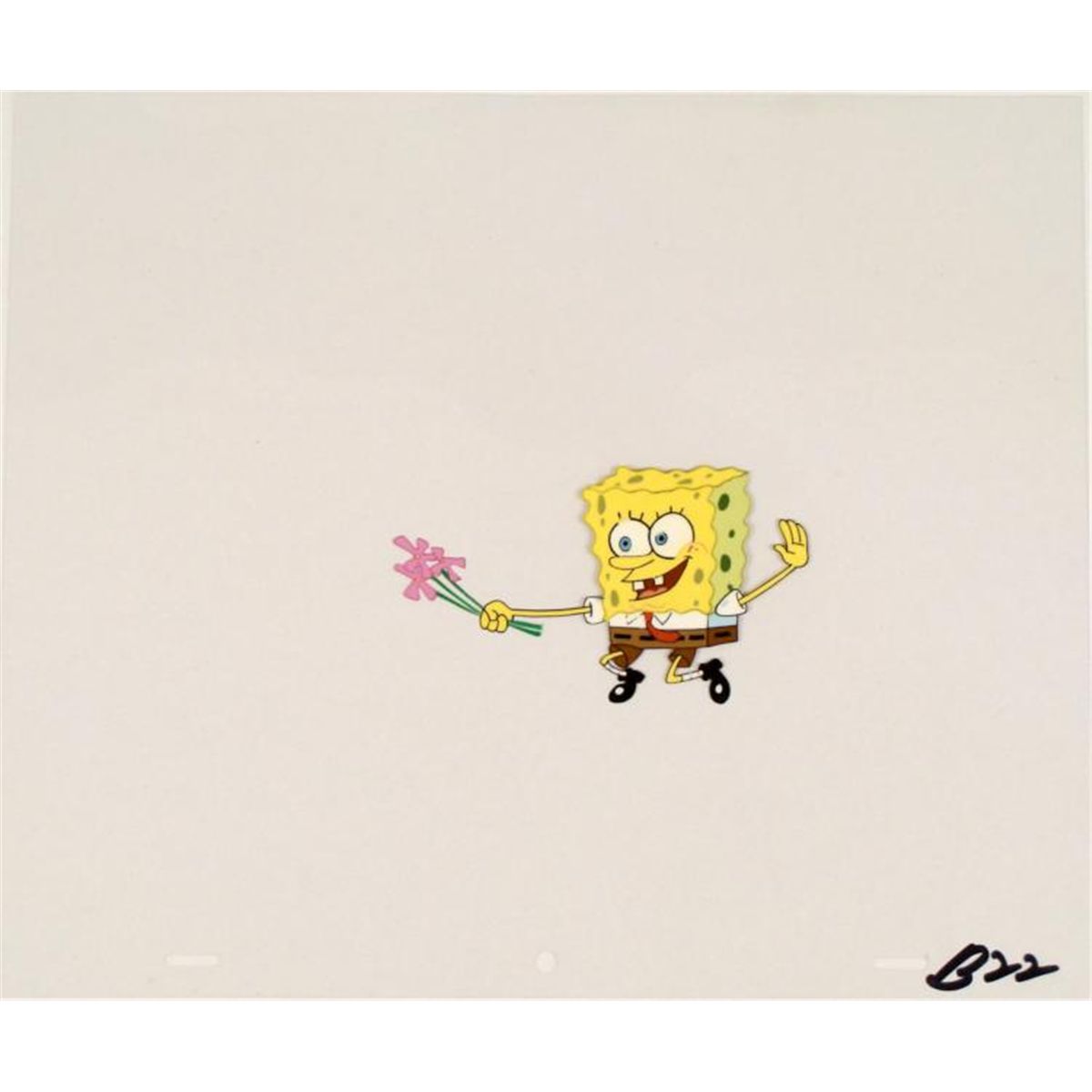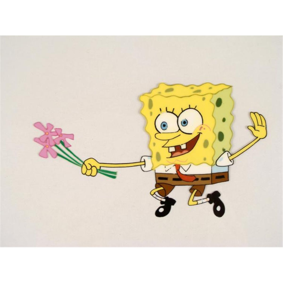 This original animation cel is from the Nickelodeon TV show SpongeBob Squarepants. The story takes place under the deep blue sea in Bikini Bottom, where SpongeBob resides. SpongeBob, who is a yellow, porous sponge, is your typical happy-go-lucky character, as he is always cheerful and enjoys making people laugh. Patrick Star, SpongeBob's neighbor who is a starfish, is your average children's show idiot, as he boasts knowing nothing and is often getting himself into ridiculous situations. Between the homes of these two lies the home of the miserable Squidward, a squid, who is known for being grouchy and playing tricks on SpongeBob and Patrick. Both SpongeBob and Squidward work at the Krusty Krab, a fast food business run by the greedy money-loving Mr. Krabs, a crab, the arch rival of the evil, possibly misunderstood, Plankton. Another neighbor, Sandy Cheeks, an athletic squirrel who normally wears an astronaut's space suit, was introduced in "Tea at the Treedome." She spends most of her time inventing and experimenting. * SpongeBob is slapping flowers in this unusual scene. * * Original Production Animated Cel Overall Size of Cel: 10 1/2" x 12 1/2" Very Good ConditionThis is an original hand-painted cel set-up used in the production of an episode of "SpongeBob SquarePants." Each one-of-a-kind set-up represents a slight change in position of the characters. When individually photographed and projected in rapid succession, the images appear to move. * To create production cels, the original animator's drawing is transferred onto an acetate cel (by hand-inking and/or photo copying). The cel is then hand-painted on the reverse side. * The cel is ready to be matted and framed. The animator's notations are at the bottom of the cel. There is some slight paint fade to SpongeBob's outline *