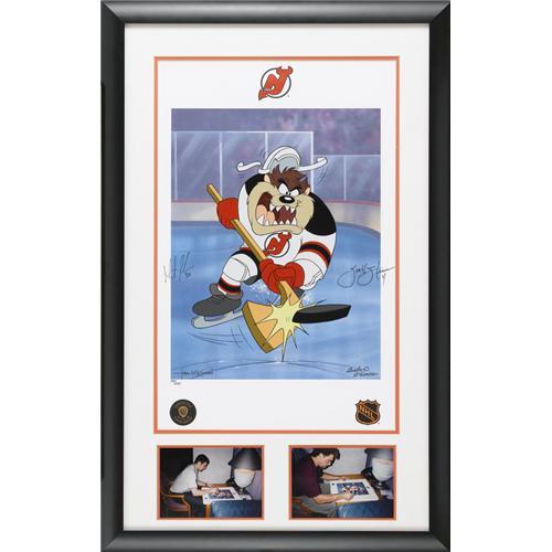 <B>"Slapshot" Tazmanian Devil Limited Edition Hand Painted Cel #194/250 Original Art (Warner Brothers, 1994).</B></I> This fine art serigraph highlights the National Hockey League Team, the New Jersey Devils. The image area measures 15" x 21", and contains both the Warner Bros. and National Hockey League seals. Signed by Tom and Charles McKimson, and New Jersey Devils players, Martin Brodeur (#30), and Scott Stevens (#4). Framed and in Excellent condition. Includes a certificate of authenticity.