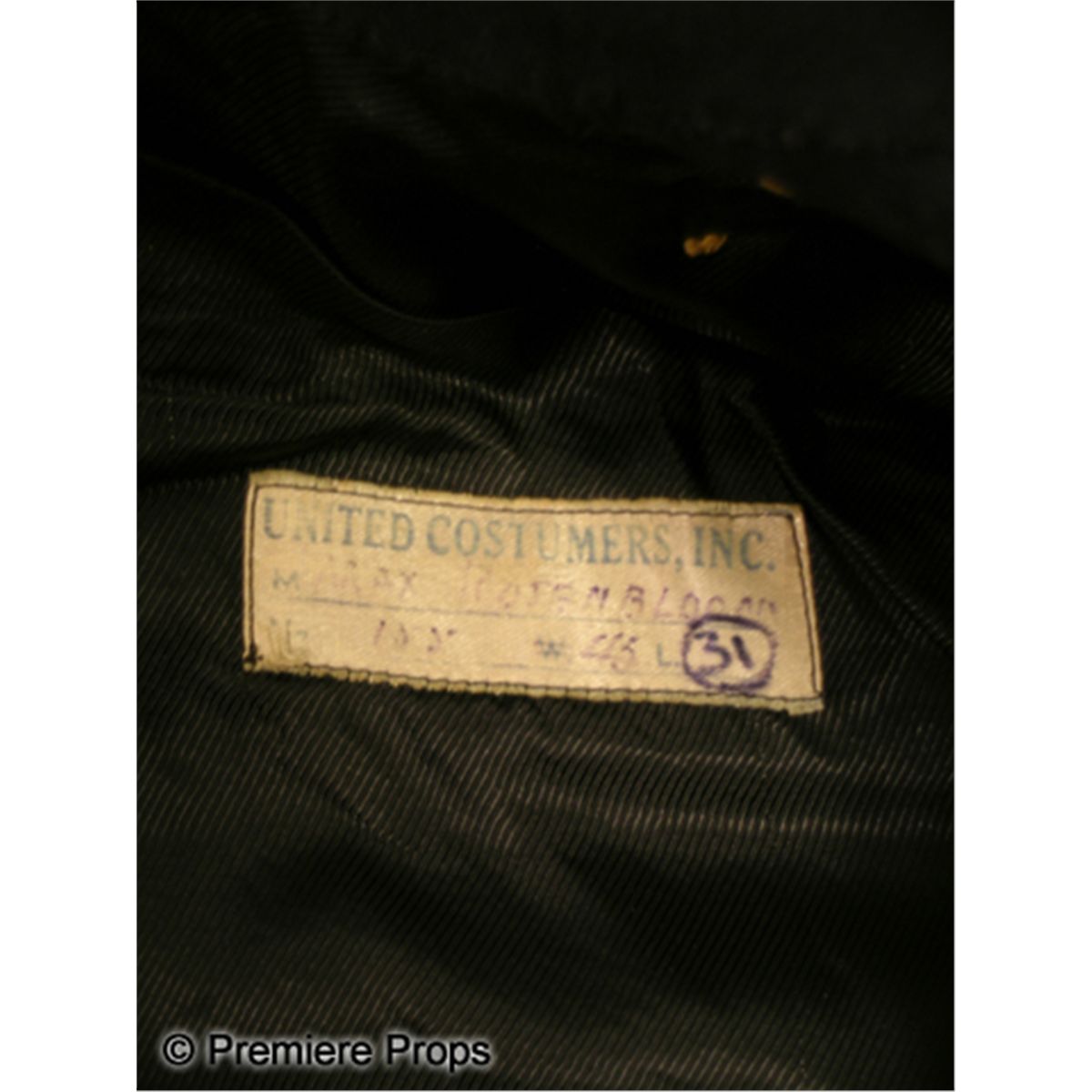 Blue Marine Corps tunic worn by Max "Slapsie Maxie" Rosenbloom in the film Submarine Patrol (1938). The boxer turned actor, a veteran of many comedic roles, portrayed Marine Sentry Sgt. Joe Duffy in this John Ford film, which also starred Richard Greene and Preston Foster. Includes a United Costumers label with Rosenbloom's name handwritten on it. Rosenbloom's imposing form graced such films as Mr. Moto's Gamble, The Amazing Dr. Clitterhouse and The Boogie Man Will Get You.