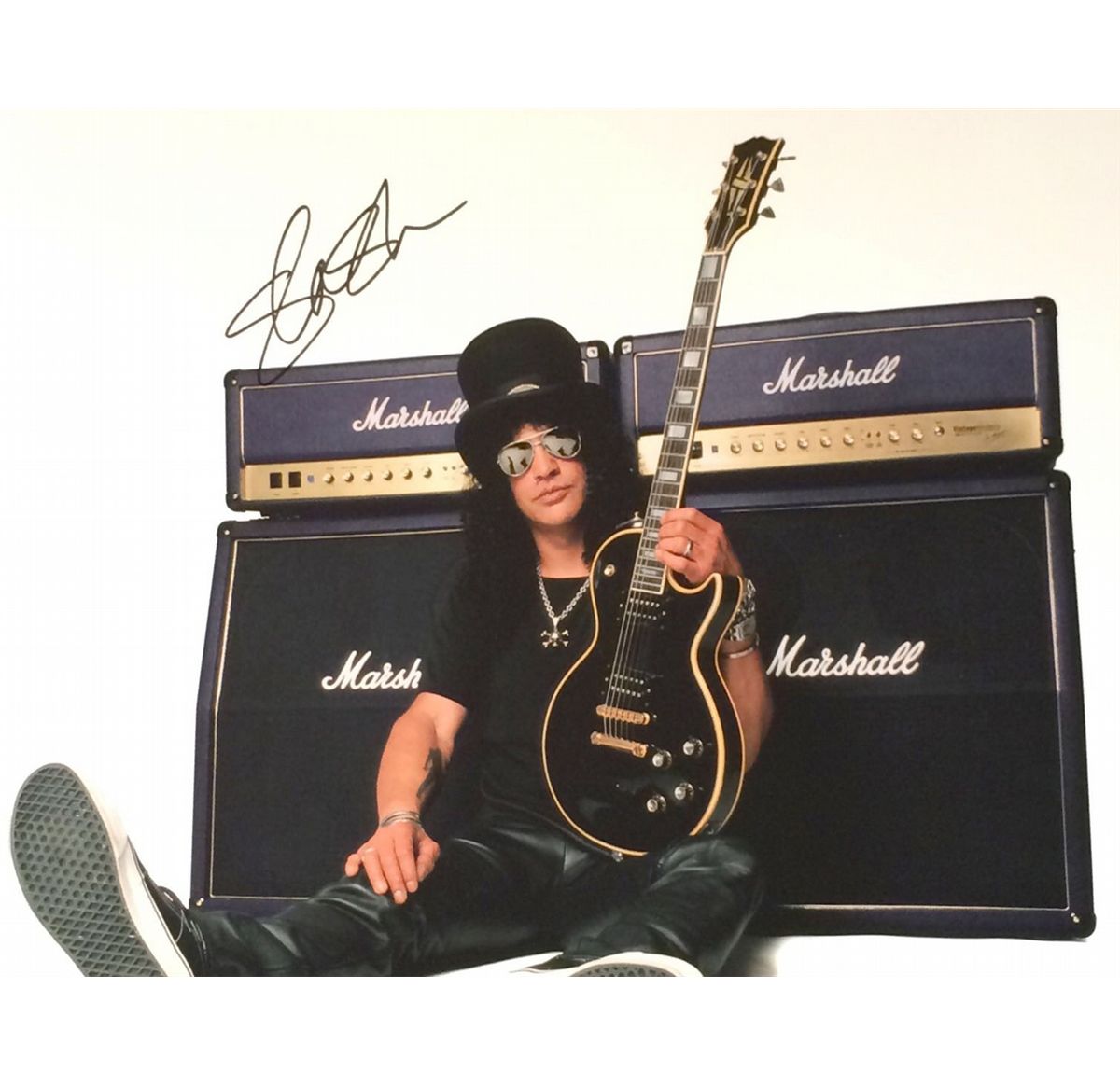 Large color 11x14 signed by the former Guns N Roses lead guitarist,cool looking image with his guitar leaning against some Marshall amps