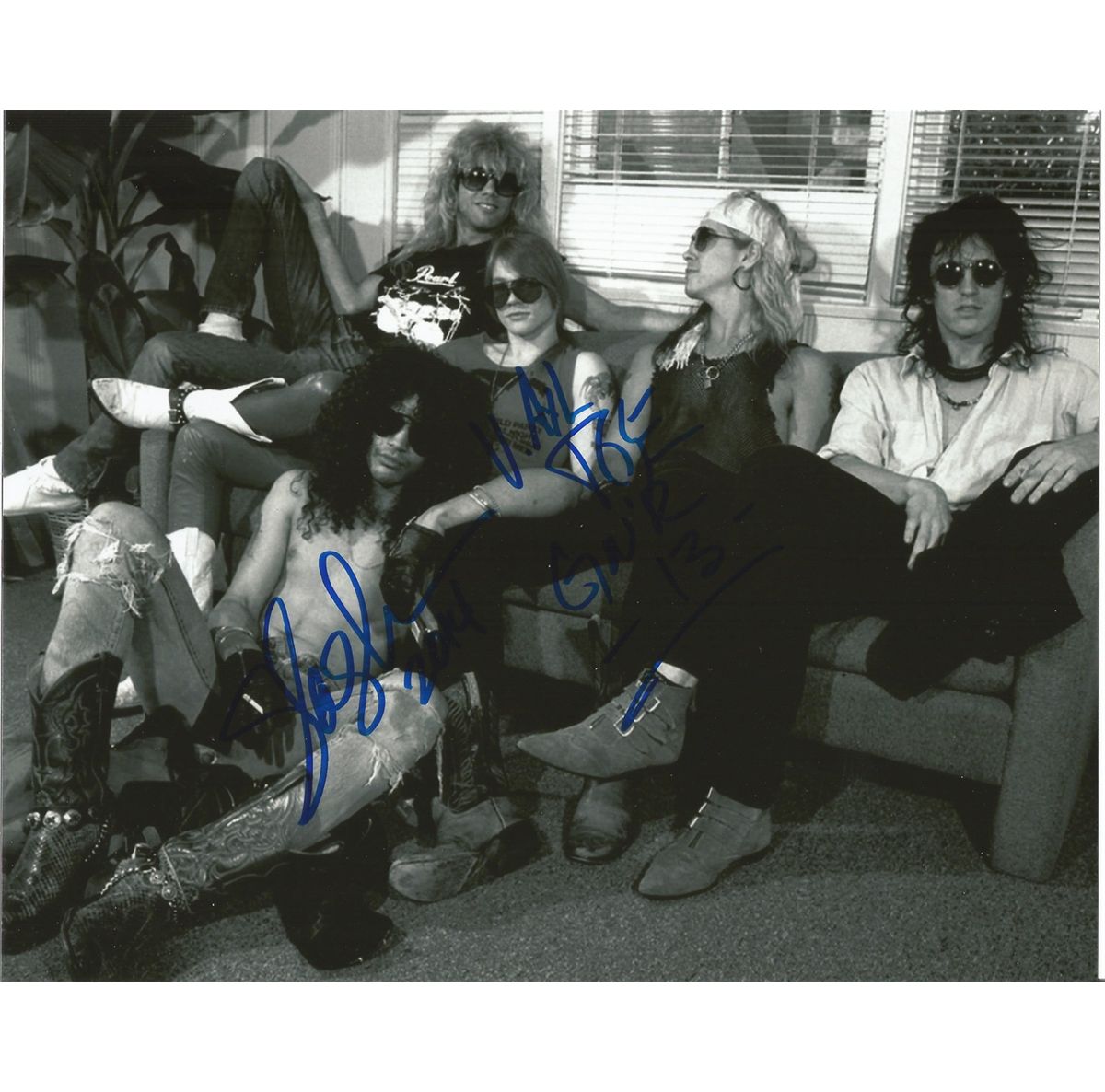Guns N Roses b/w glossy 8x10 signed by Axl Rose who added GNR 13 and by Slash who adds 2014