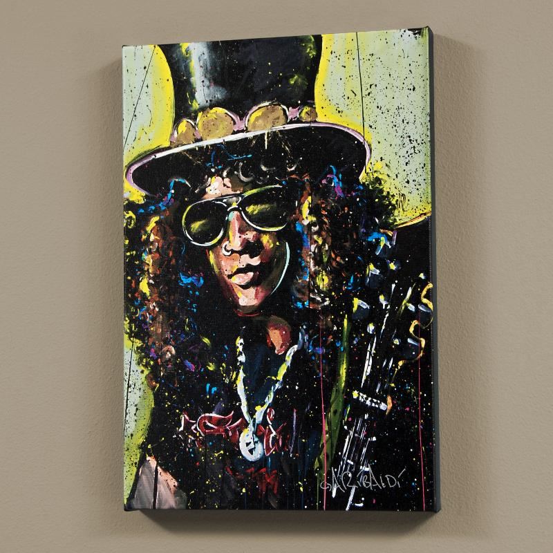 Combining his passions for music and art, David Garibaldi creates stunning visual poetry. "Slash" is a limited edition giclee on stretched canvas, numbered and bearing the artist's authorized signature. This piece is gallery wrapped and ready to hang. Includes Certificate of Authenticity! Measures approx. 48" x 60" (image).