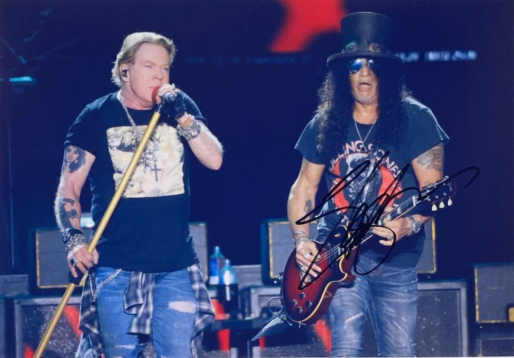 Slash facsimile facsimile signed photo. 8x10 inches. This item is a reprint of an original autograph