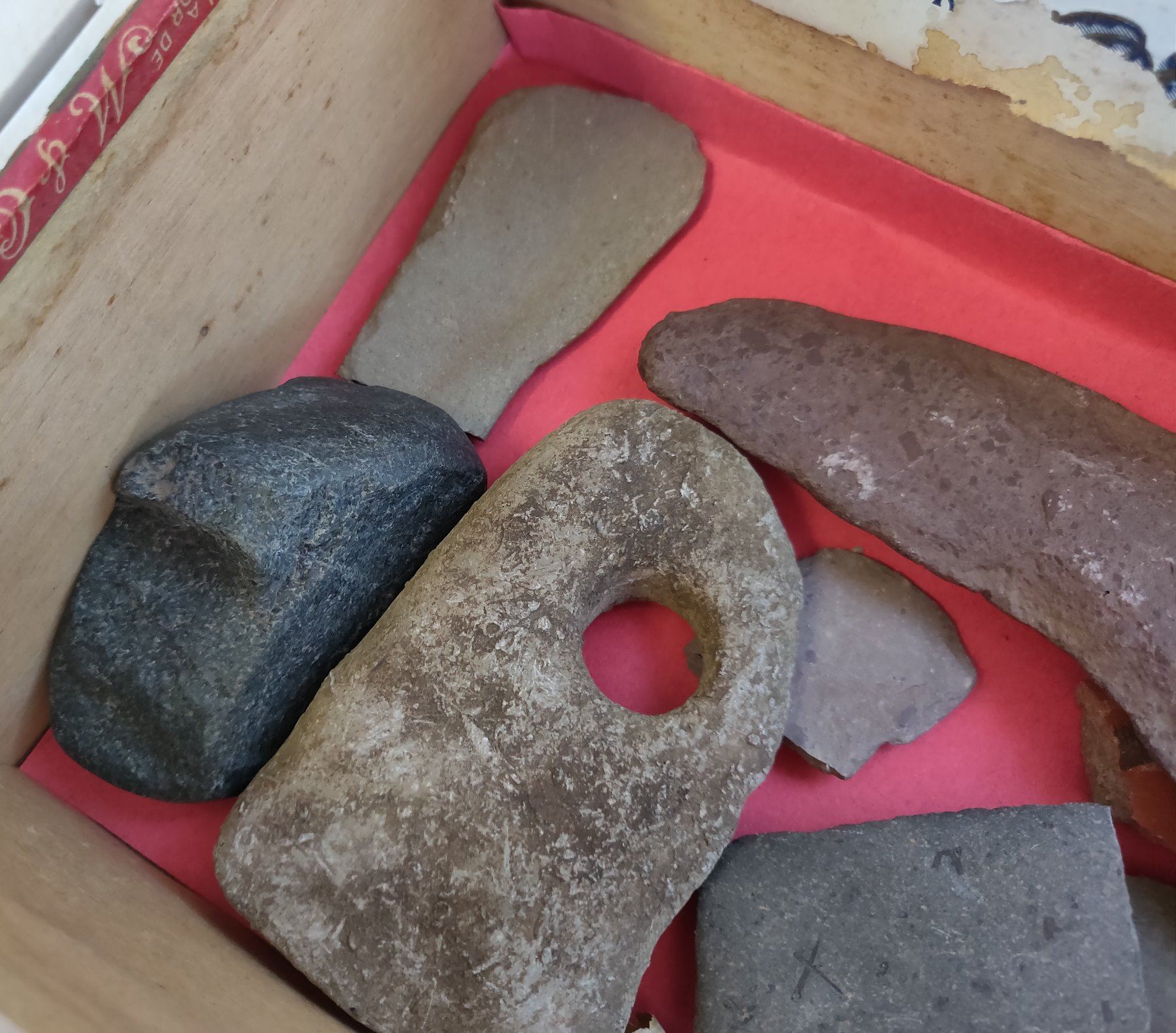 Slate Knife & Scraper Collection, pre-historic items. Made of slate, stone and clay, the knife measures 4 1/2" long. Hohokam, Ajo, Pima County, Arizona. Condition: As found, see images. Shipping: $22.50 w/insurance and signature, due to value and weight.