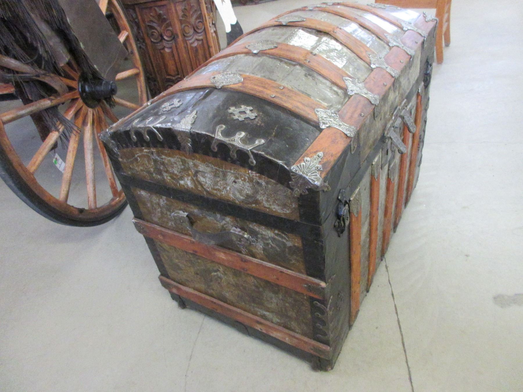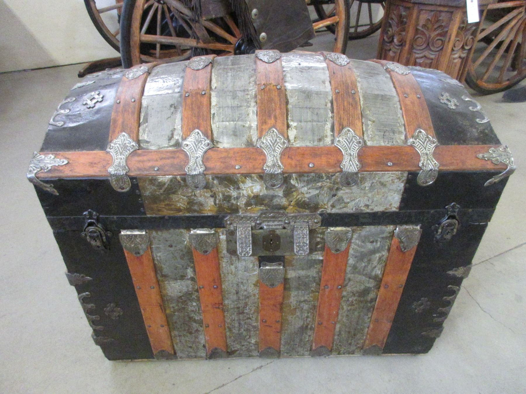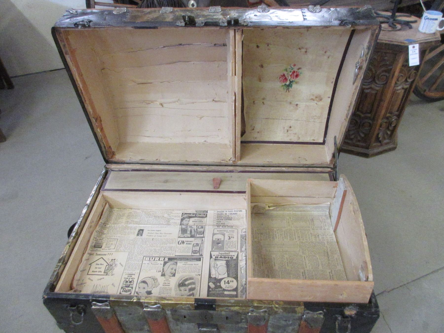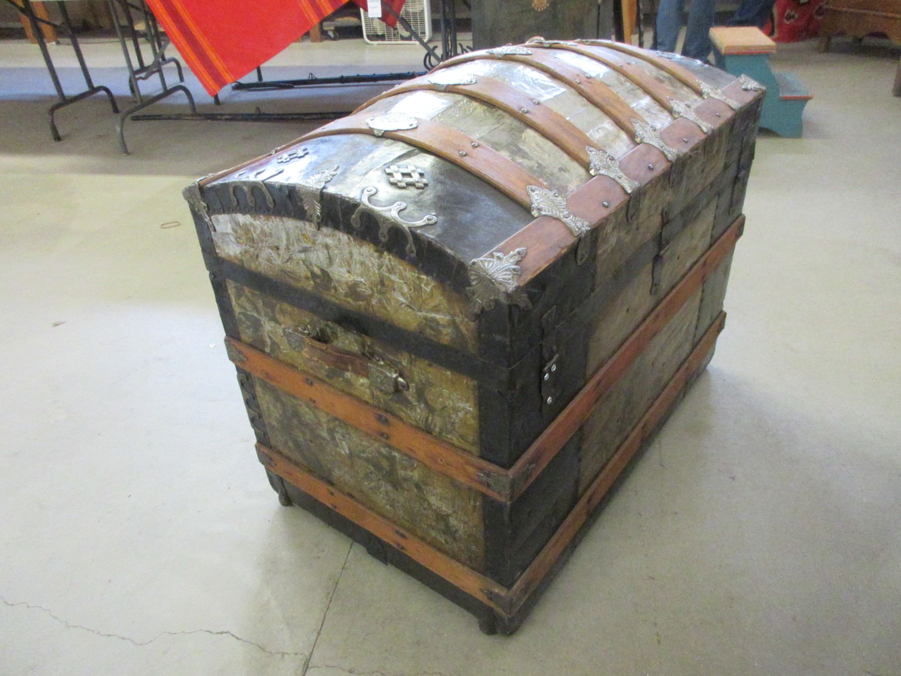 Slatted Round Top Trunk With Tray- 27"H X 34"L X 21"D