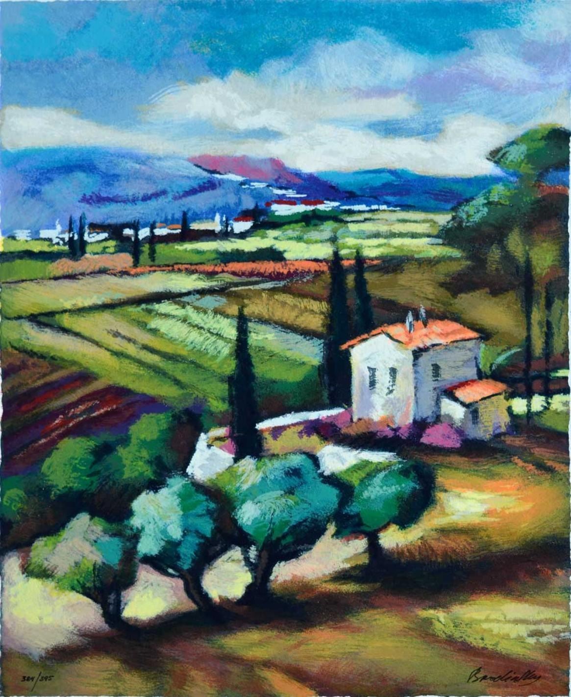 Artist: Slava Brodinsky - Title: Fields View - Medium: Serigraph on Fine Art Paper - Signature: Hand-signed by the Artist - Limited Edition: 395 - Image Size: Approximately 18.5 Inches x 14.5 inches - Paper Size: Approximately 20.75 inches x 16.5 inches - Framed: Unframed - Details: This work comes with a Certificate of Authenticity - Biography:Slava Brodinsky Is A Master Of Painting The Light, Capturing The Rays Of The Sun In His Landscapes. His Work Is Textured And Has An Air Of Earthiness, Achieved By The Use Of Rough Brushes, Impasto And Mixing The Paint With Natural Elements Such As Sand.
