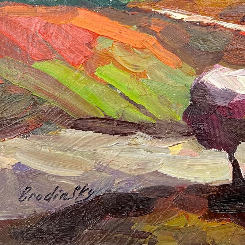 This is an original painting oil on canvas by Slava Brodinsky. Hand signed by the artist, this piece comes with a letter of authenticity. Measures approximately 16" x 12" (image).