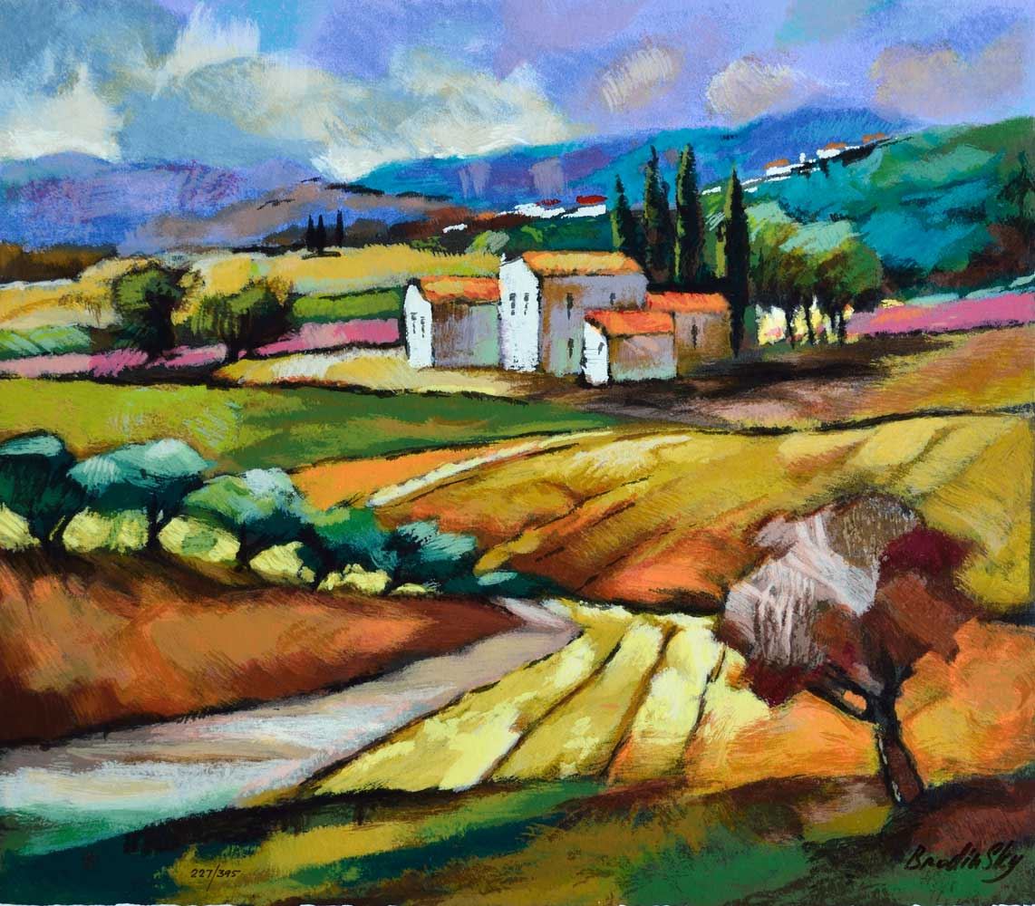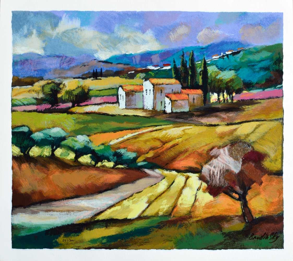 Artist: Slava Brodinsky - Title: Tuscany Region - Medium: Serigraph on Fine Art Paper - Signature: Hand-signed by the Artist - Limited Edition: 395 - Image Size: Approximately 19 inches x 22 inches - Paper Size: Approximately 21 inches x 24 inches - Framed: Unframed - Details: This work comes with a Certificate of Authenticity - Biography:Slava Brodinsky Is A Master Of Painting The Light, Capturing The Rays Of The Sun In His Landscapes. His Work Is Textured And Has An Air Of Earthiness, Achieved By The Use Of Rough Brushes, Impasto And Mixing The Paint With Natural Elements Such As Sand.