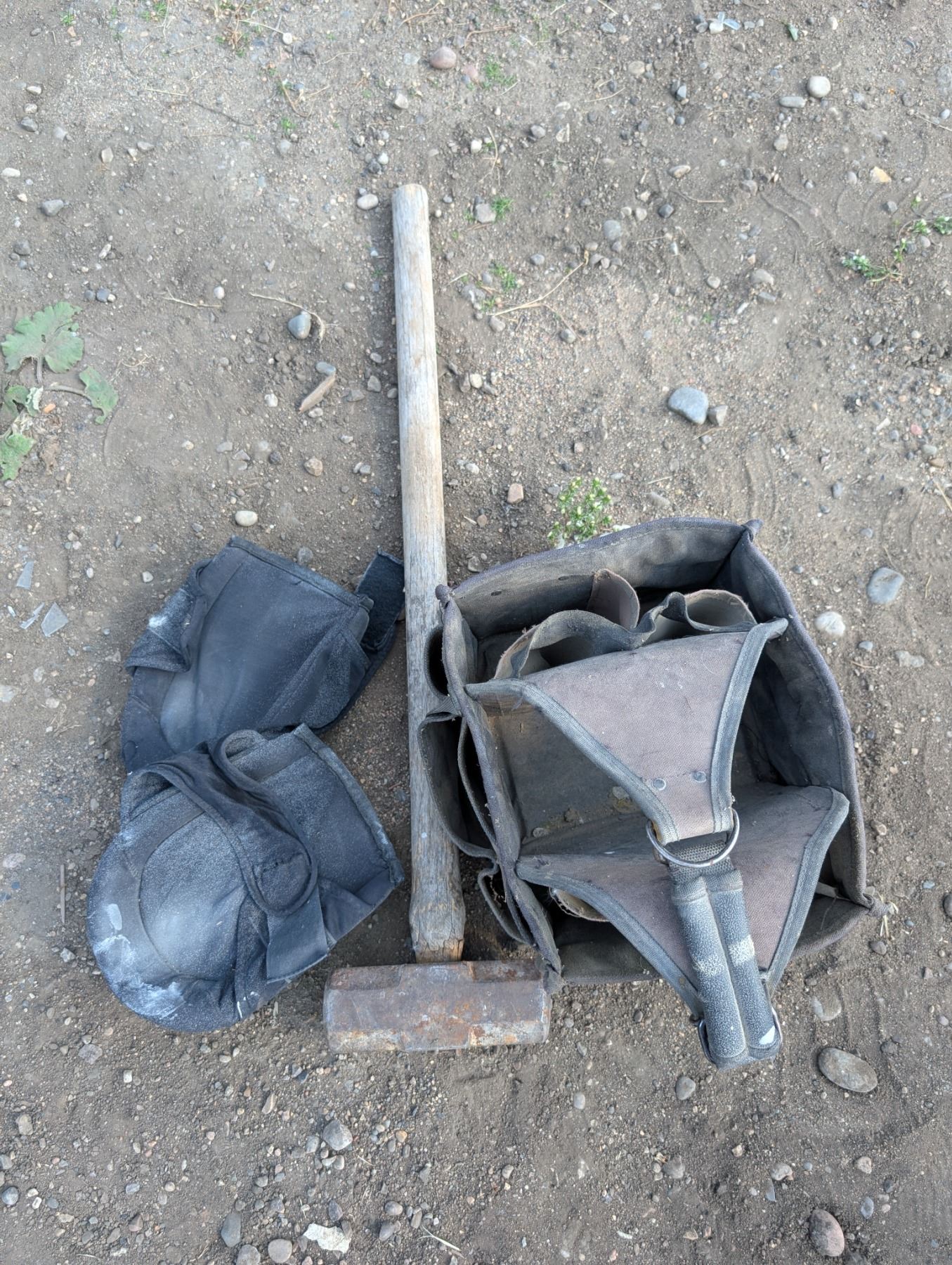Sledge Hammer, Work Bag, and Knee Pads (Fine Condition)