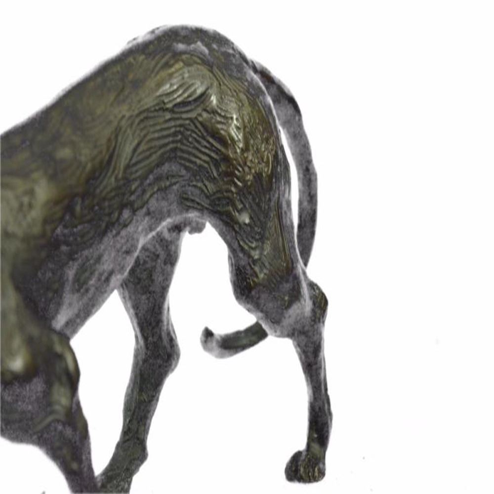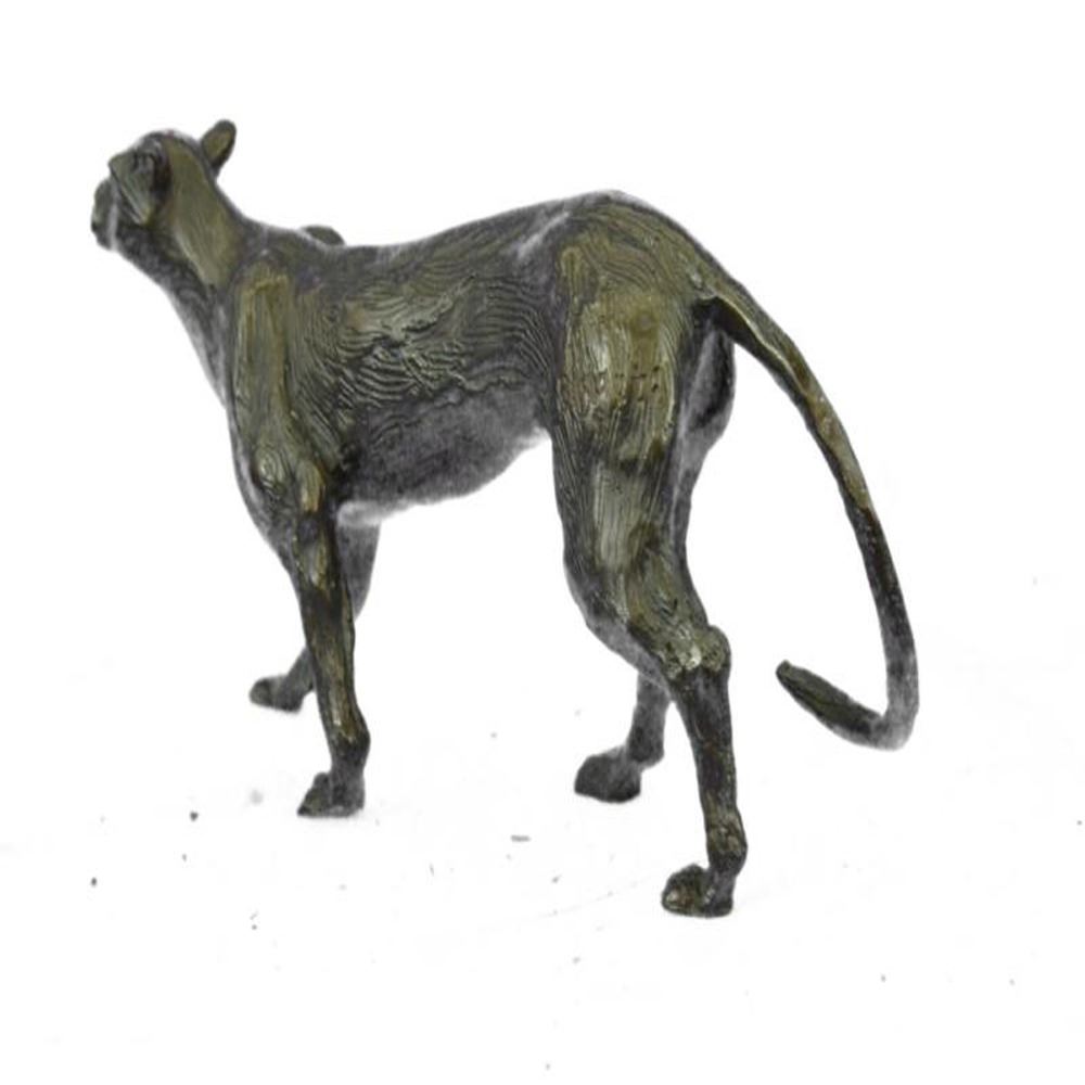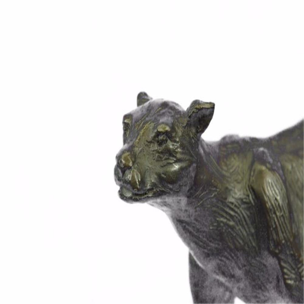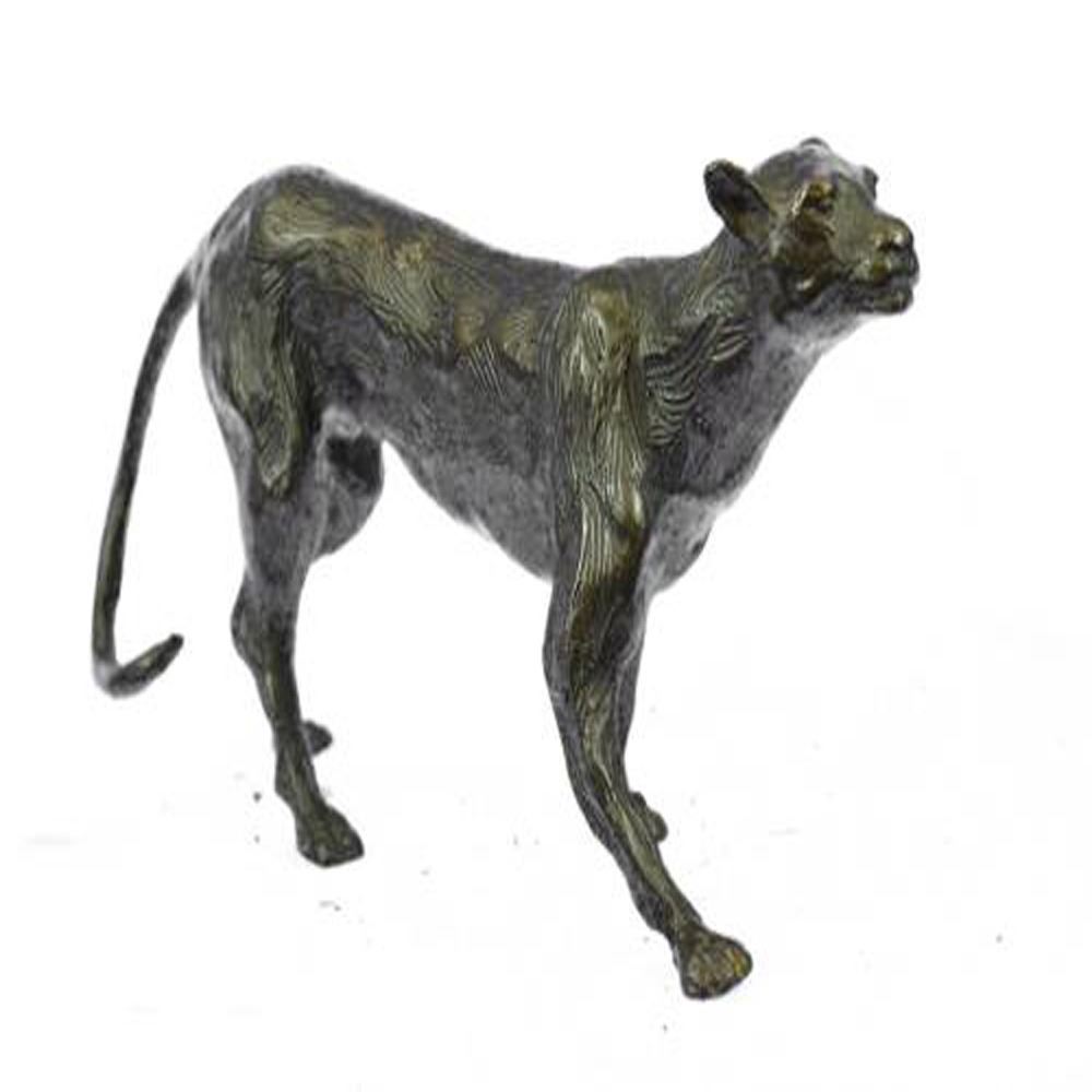 The female lion is quite flexible. Felines are agile and graceful creatures able to jump delicately from high places. This feline perches its hind in the air standing on its back legs. The front half of the body rests on the floor. Only a feline would be comfortable in such a position. This is a lovely Sculpture for an animal lover, especially an admirer of cats. The Sculpture was created using the lost wax method. Bronze Dimensions: Height 4 X Width 11 inches. Weight: 3 LBS.