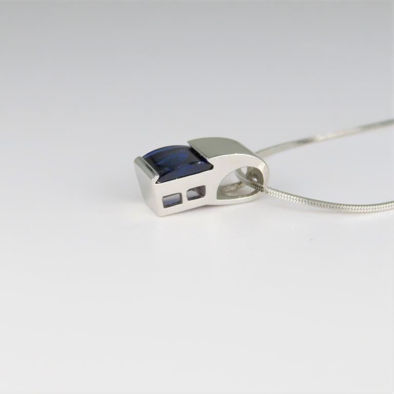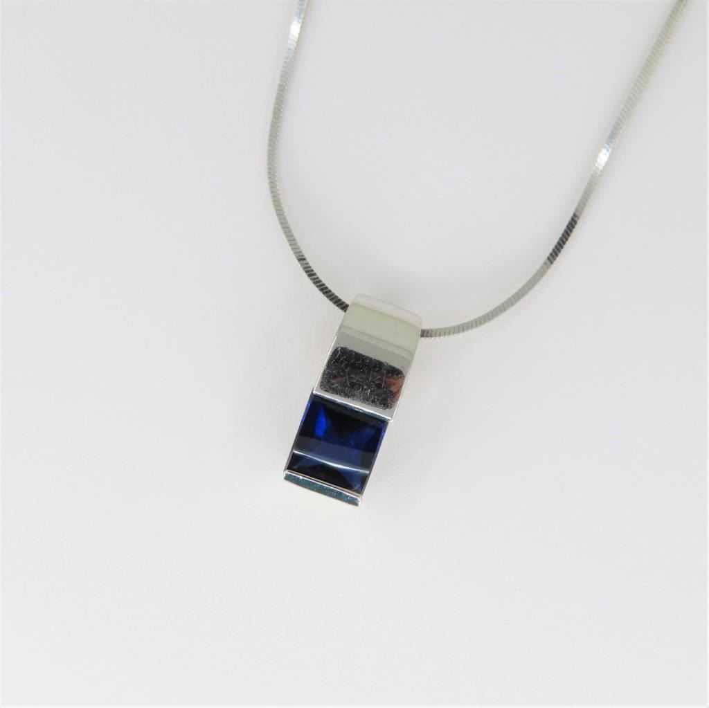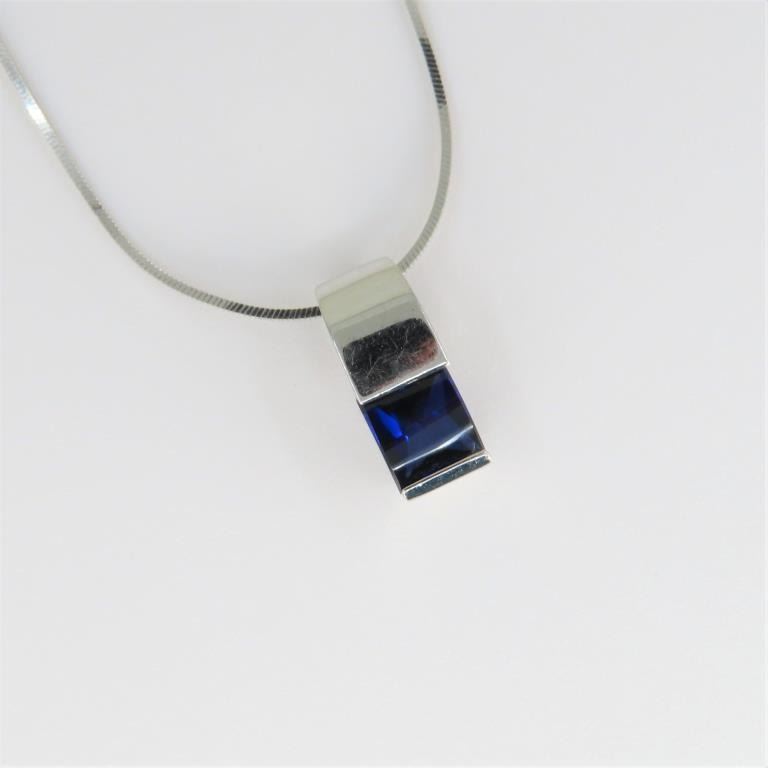 featuring a fine Blue Sapphire weighing approx. 1.00 carat channel set in a custom crafted 14 karat white gold modern style setting.
