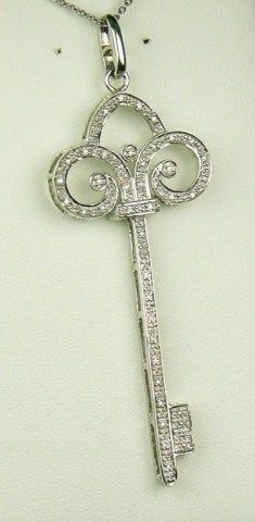 Sleek ladies Sterling Silver handmade ‘KEY’ design neckpiece micro set with 40 round diamonds weighing approx. 0.30 carats of H-I colors and SI clarity. Estimate $400-$600 Labor intensive.