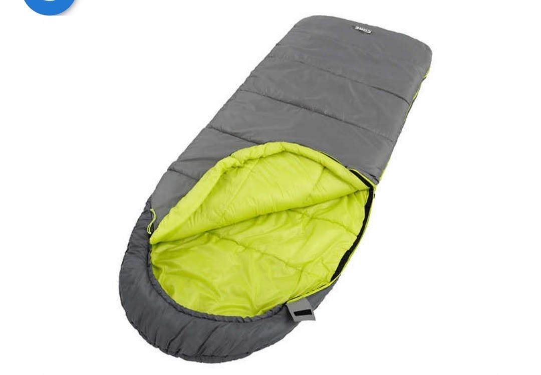 Elevate, 30 Degree Core Sleeping Bag, Built In Hood, Tech Pocket, Green/Black, Comes in Carrying Bag, Shelf Pull, New Condition