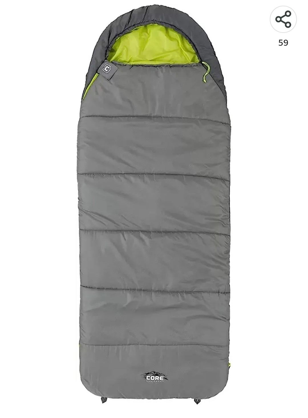 Elevate, 30 Degree Core Sleeping Bag, Built In Hood, Tech Pocket, Green/Black, Comes in Carrying Bag, Shelf Pull, New Condition