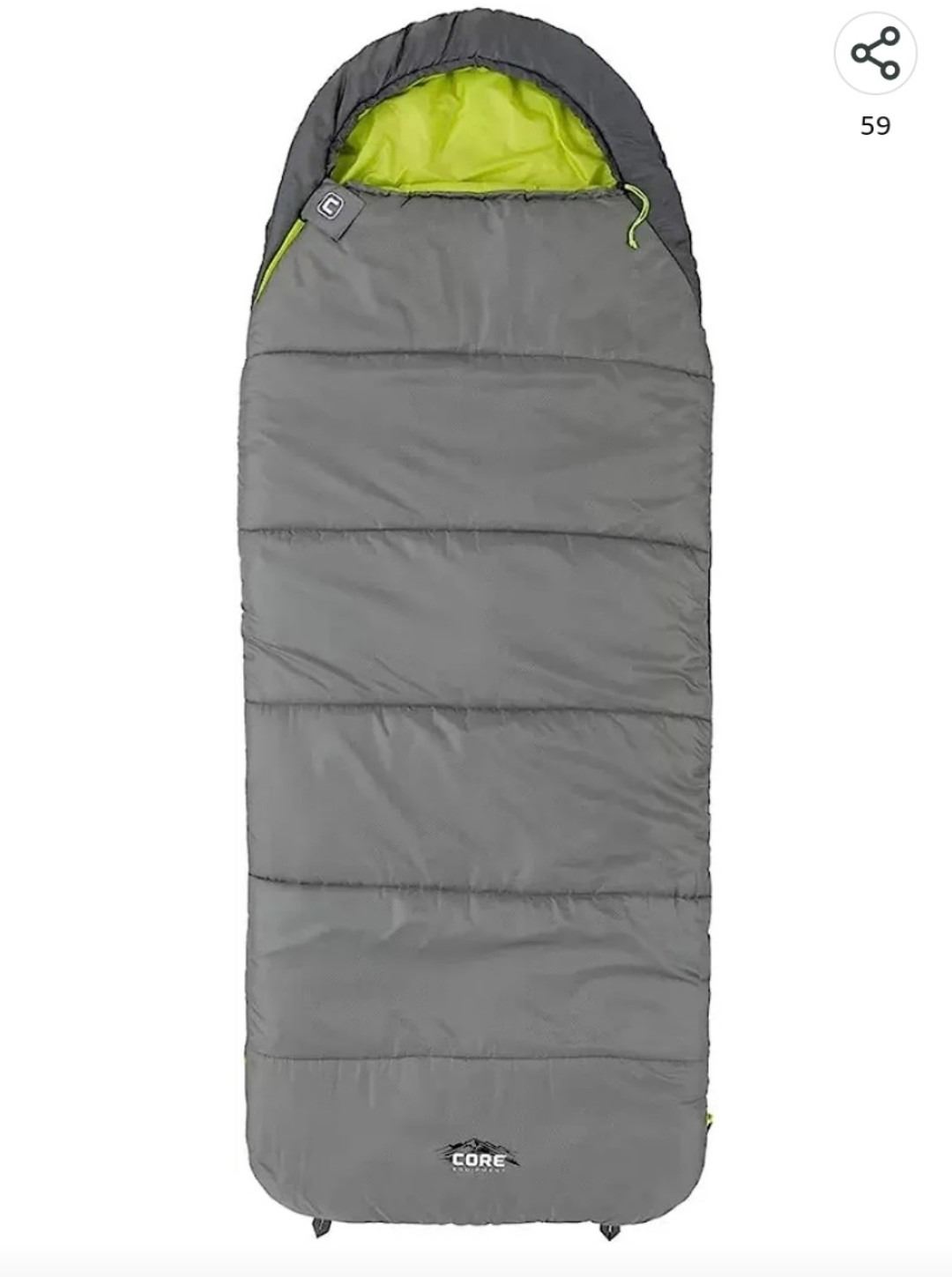 Elevate, 30 Degree Core Sleeping Bag, Built In Hood, Tech Pocket, Green/Black, Comes in Carrying Bag, Shelf Pull, New Condition