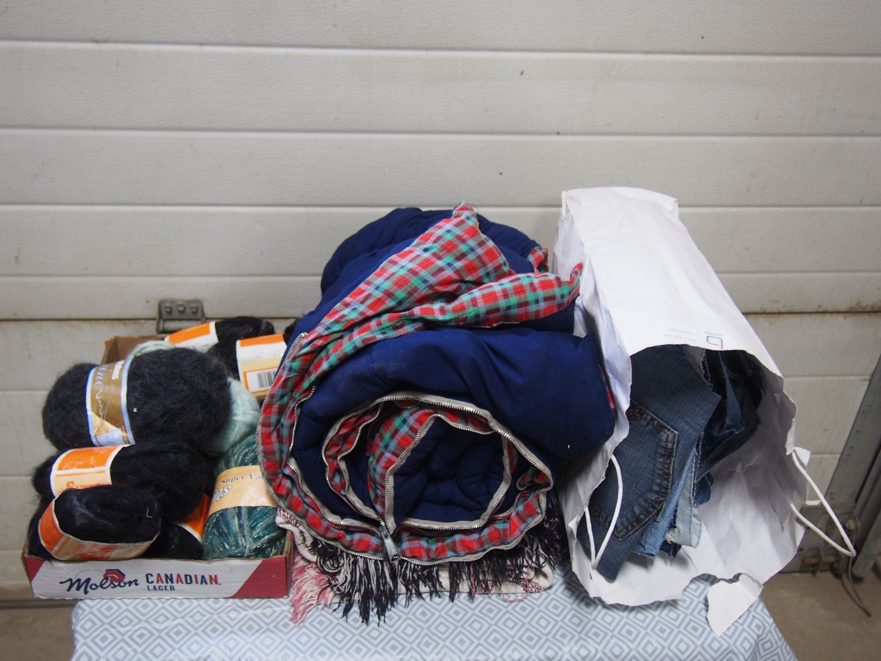 Sleeping Bags, Misc Sewing Related, Lot of Yarn and Blanket
