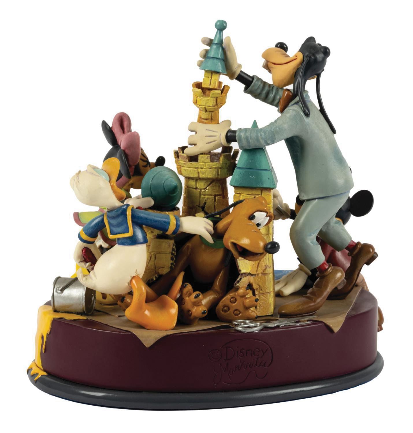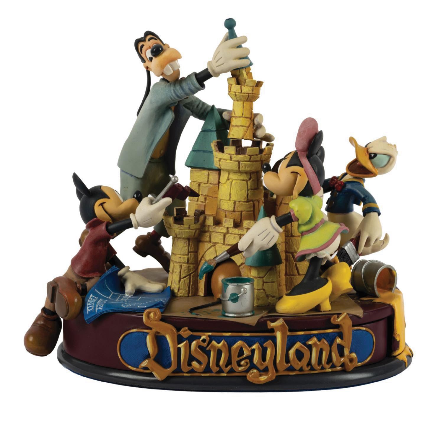 (Disneyland, 2005) A Sleeping Beauty Castle figure by Markrita, crafted exclusively in celebration of Disneyland's 50th anniversary. Depicting the Fab 5, the castle measures 8" tall and displays in fine condition. The Disneyland logo opens to reveal a hidden drawer with pin.