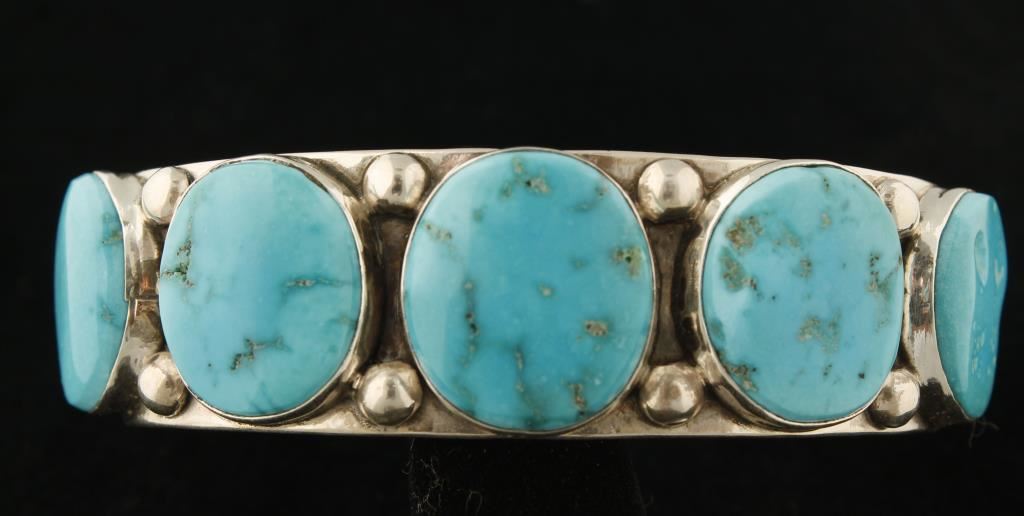 7 large stones, Made by noted silversmith Tony Aguilar signed "TA", set in sterling silver.