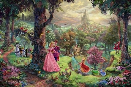 Sleeping Beauty by Thomas Kinkade. Unframed and stretched on Limited Edition enhanced canvas. Comes with certificate of Authenticity! Dimension (inches): 18x27