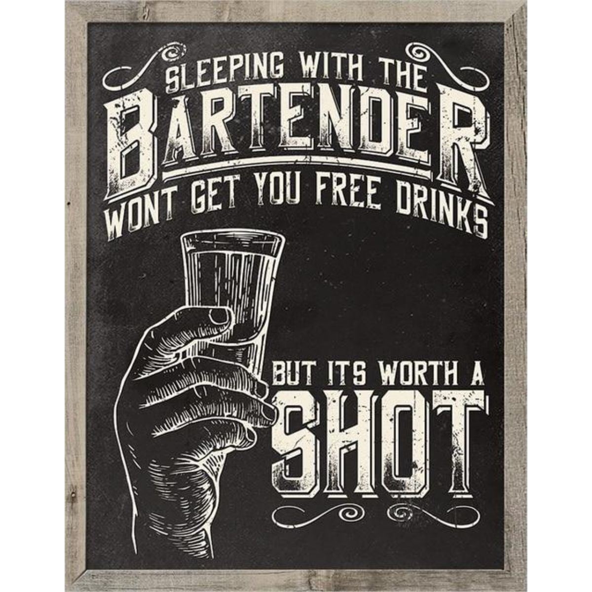 Worth A Shot metal pub bar sign. 12 1/2" X 16" with pre-drilled holes for mounting.Â