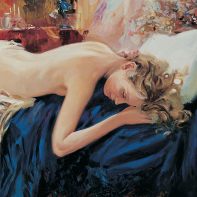 "Sleeping " is a limited edition Giclee on Canvas by Igor Semeko. The piece is numbered, hand siged by the artist, and come with a letter of authenticity. Measures approximately 12" x 16".
