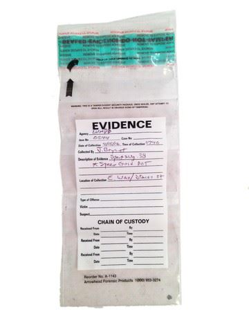 Screen used, clear 'Evidence' bag with green border and handwritten notes. Seen on screen when Jennifer Bryant (Michelle Monaghan) confronts Vincent (Jamie Foxx) at the scene of the drug heist. The bullet shown on screen is not with the bag ( 9.5"x4").